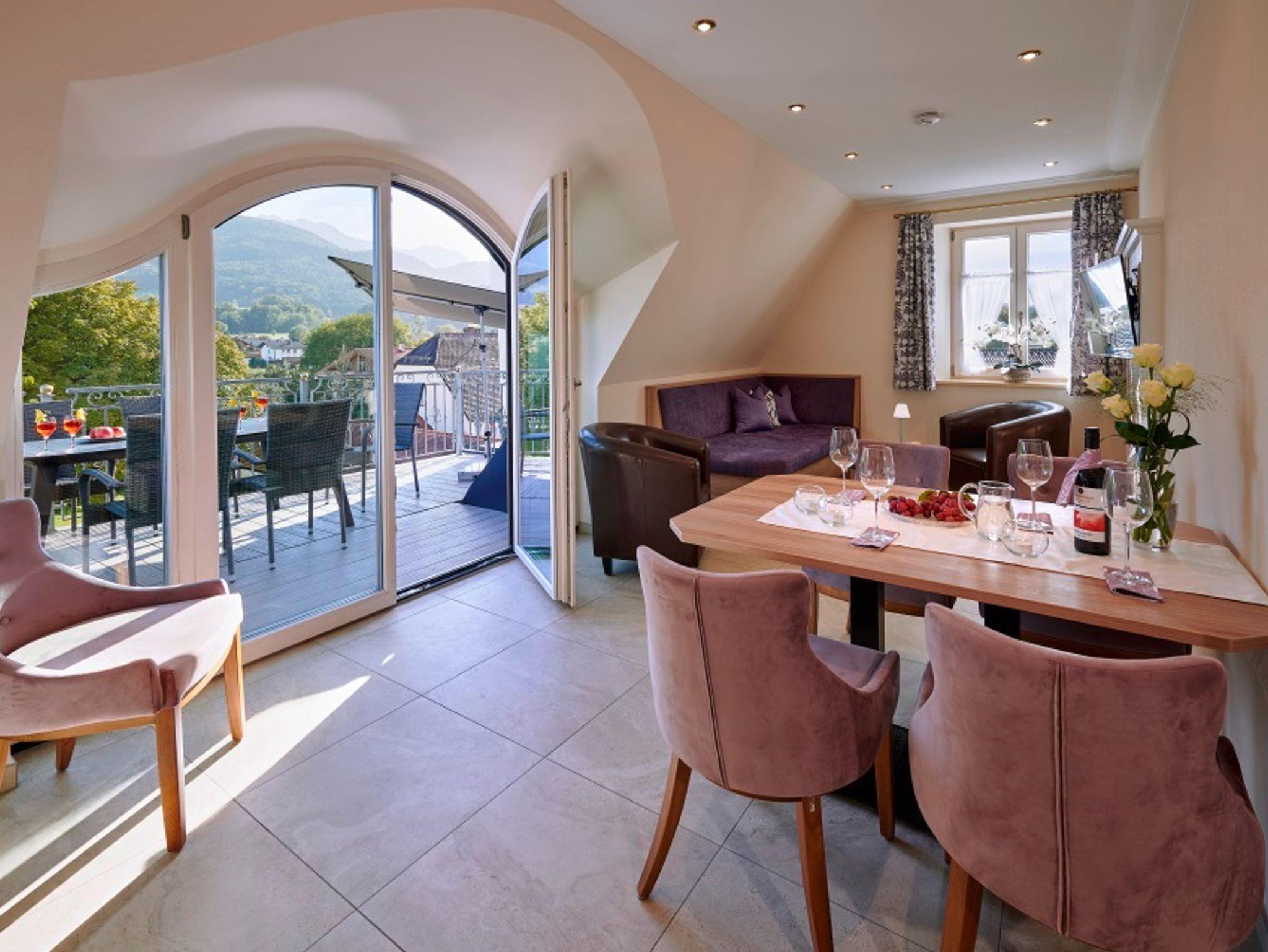 Das Bonnschlössel ist ein Ort mit Geschichte, an dem Sie in unseren neu gestalteten Ferienwohnungen die schönste Zeit des Jahres genießen können. Tauchen Sie ein in die Vergangenheit unseres Hauses! Der große Park mit seinem alten Baumbestand und die großzügige Terrasse laden zum Entspannen ein und im Haus begegnen Sie immer wieder der Zeugnissen aus vergangenen Zeiten des Bonnschlössls.In unseren mit viel Liebe zum Detail neu gestalteten Ferienwohnungen genießen Sie stilvoll Ihre schönsten Tage des Jahres: moderne Materialien und edles Design in Einklang mit der Geschichte des Hauses. Entspannen Sie! …im Haus, mit einem Glas Wein auf der Terrasse oder auf dem Liegestuhl in unserem großen Park – Sie sollen während Ihrem Aufenthalt in unseren Ferienwohnungen im Bonnschlössl am Chiemsee nichts vermissen! Die zehn Ferienwohnungen im Bonnschlössl sind unterschiedlich groß, aber alle sind mit maßgeschreinerten Möbel stilvoll eingerichtet. Der fantastische Blick in die Chiemgauer Bergwelt ist von vielen Wohnungen aus kostenlos zu genießen.Die Ferienwohnungen im 1. und 2. Stock sind alle bequem mit einem Lift erreichbar. Die großzügige Terrasse und ein gemütlicher Aufenthaltsraum laden zum Verweilen ein. Die große Parkanlage mit Sonnenliegen kann jederzeit gerne genutzt werden.Entspannung und Erholung finden Sie auch in unserem kleinen, aber feinen, Wellnessbereich. Hier stehen Ihnen ein Saunabereich und verschiedene Verwöhnprogramme (nach Terminvereinbarung) zur Verfügung! Unseren Gästen, die eine Ferienwohnung in Bernau am Chiemsee gebucht haben, stehen außerdem der Waschraum im EG mit Waschmaschine und Trockner zur freien Verfügung.Damit auch die PKW´s & Bikes den Urlaub genießen können, sind ausreichend Parkplätze sowie eine abschließbare Fahrrad-Garage vorhanden. Ebenso finden Sie eine Lade-Box für E-Auto's.