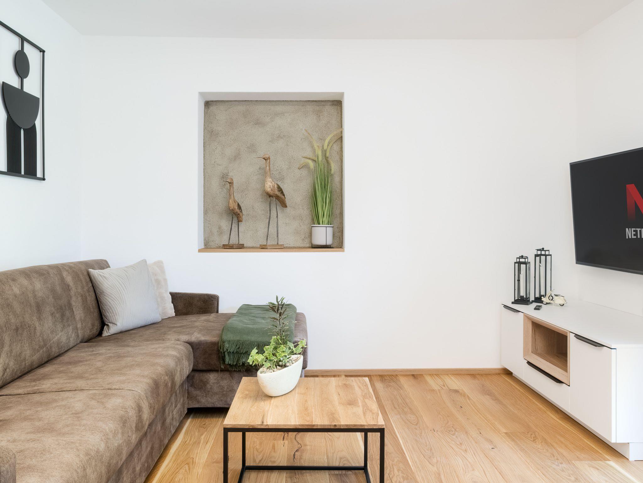 Entspann Dich im Wohnzimmer mit gemütlichem Ambiente, das mit einem 55-Zoll-Smart-TV inkl. NETFLIX und Internet-TV in UHD-Qualität ausgestattet ist. Genieße Deine Lieblingssendungen und Filme in bester Bildqualität.