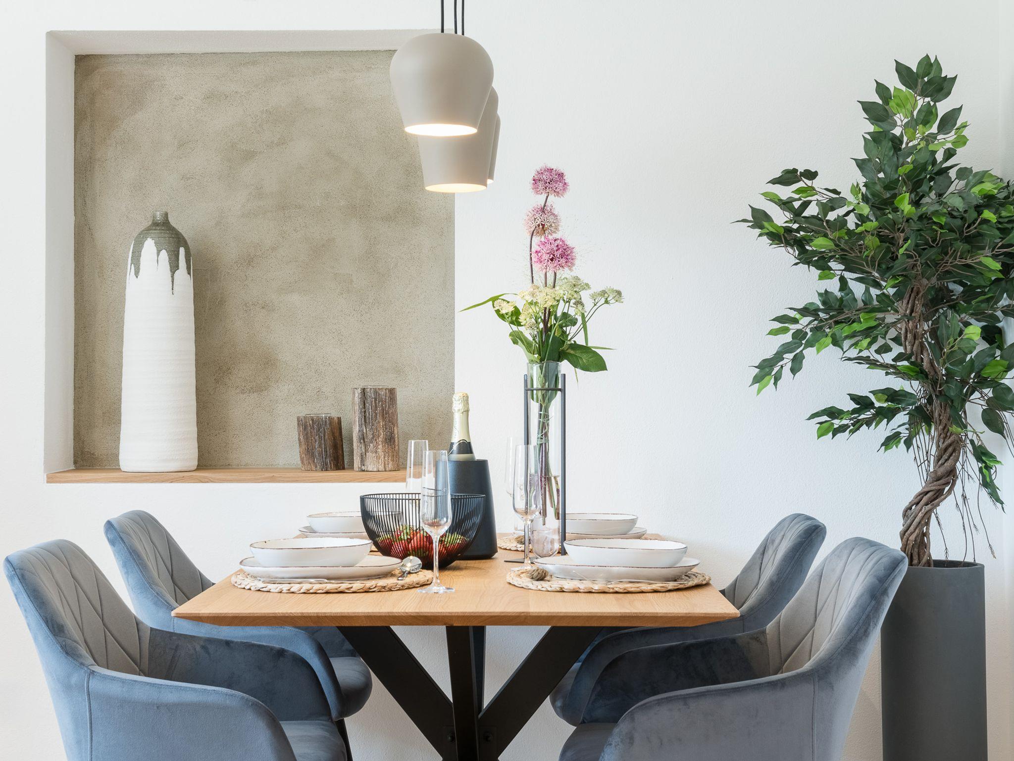 Darüber hinaus bietet die Wohnung einen großzügigen Essbereich für bis zu vier Personen – perfekt für gemeinsame Mahlzeiten und gesellige Abende.