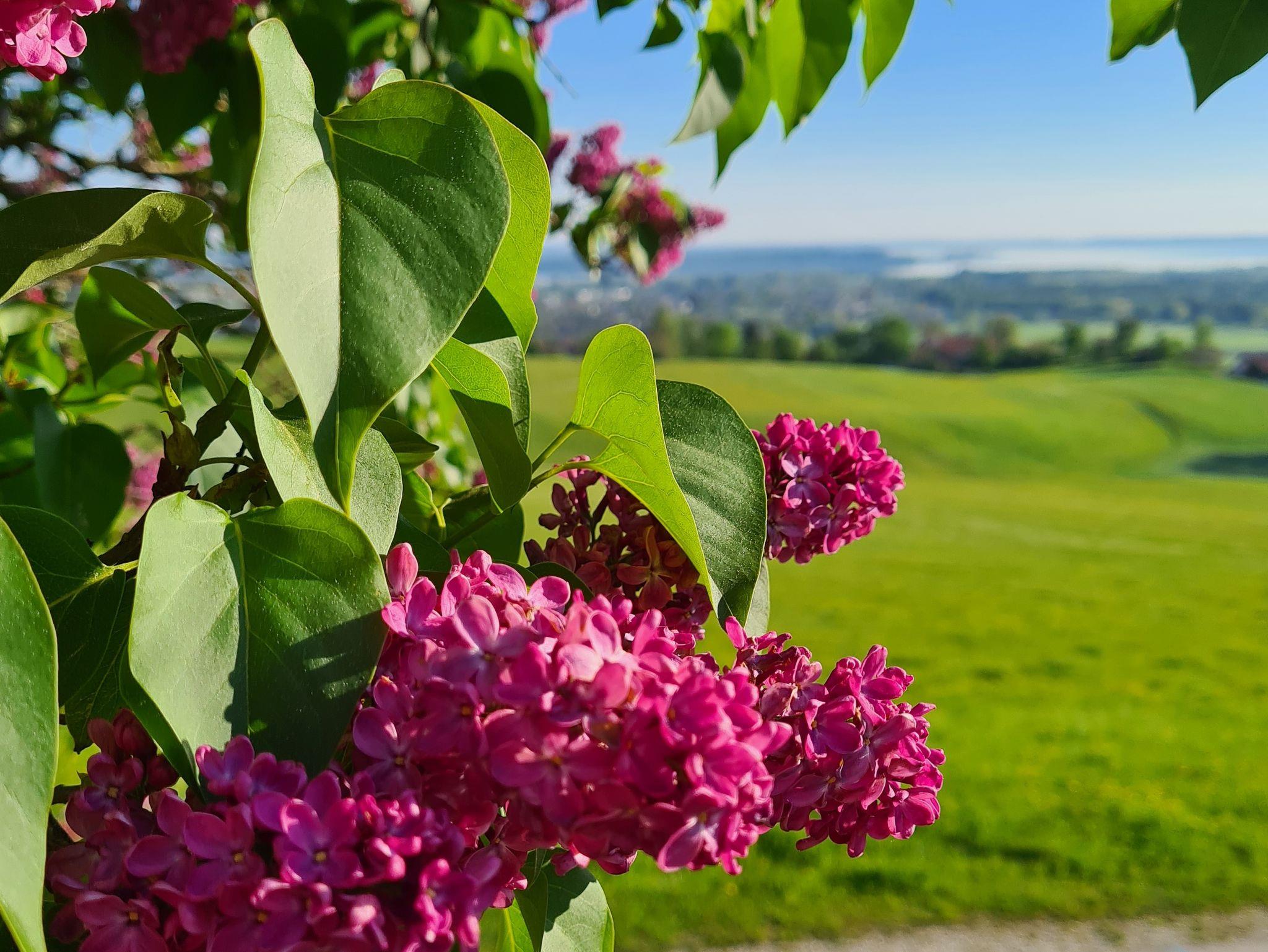 • NEUER großer Balkon mit Abendsonne - Blick auf den Chiemsee und in den Obstgarten