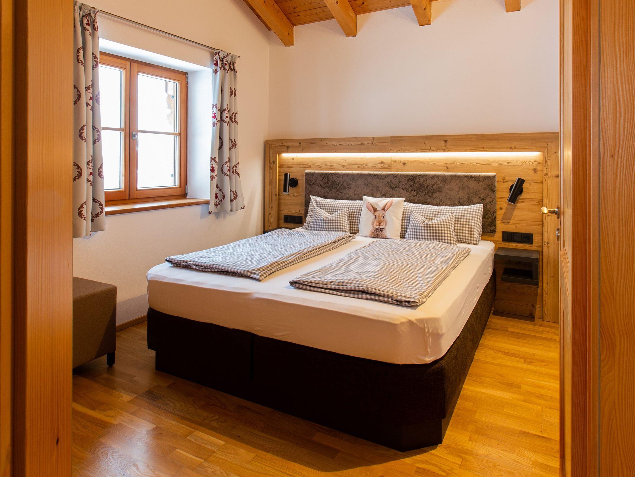 Unsere fünf Ferienwohnungen für bis zu fünf Personen bieten alles, was das Urlauberherz begehrt. Die Mischung aus modernen Farben und Formen sowie Holzelementen macht die Unterkünfte besonders gemütlich und wohnlich. Alle Wohnungen verfügen über einen eigenen Balkon, der entweder einen herrlichen Blick auf den Chiemsee oder die Chiemgauer Alpen bietet. Was könnte schöner sein als ein gemütliches Frühstück mit Blick auf das „Bayerische Meer“? Davor lohnt sich noch ein Blick in den Hühnerstall für ein ganz frisches Frühstücksei. Im Sommer lockt der Bauerngarten vor dem Haus mit frischen Kräutern, Gemüse und Beerensträuchern zum Naschen. Auf dem Hof, der im Nebenerwerb bewirtschaftet wird, leben natürlich auch noch mehr Tiere: Ochsen, die den Sommer auf den Weiden rund um unseren Hof verbringen, unsere zwei Schafe Gustl und Liesl, unsere Hasen und unsere Hofkatzen Mitzi, Schnurri und Schokoblitz, die sich immer über eine Streicheleinheit freuen.