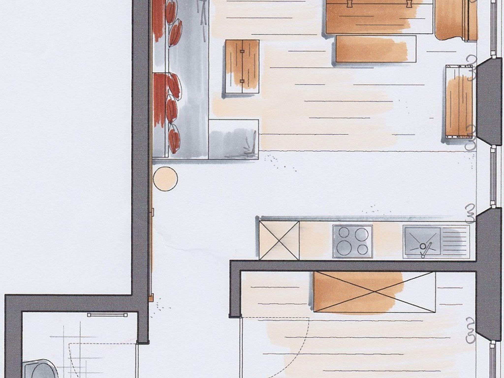 separates Schlafzimmer, Bettwäsche, Wohnbereich mit Sofa, Sat-TV, Radio, Essecke mit Eckbank, Wohnküche mit Backofen, Geschirrspüler, Herd mit 4 Ceranfelder, Kühlschrank mit Tiefkühlfach, Geschirrtücher vorhanden, Bad/WC mit Dusche, Fön, Handtücher, Balkon mit Gartenmöbeln, Gästewaschraum mit Waschmaschine und Wäscheständer, Freisitz mit Grillmöglichkeit, Liegeplatz/-wiese, Heizung, WLAN, Insektenschutzgitter, Nichtraucher