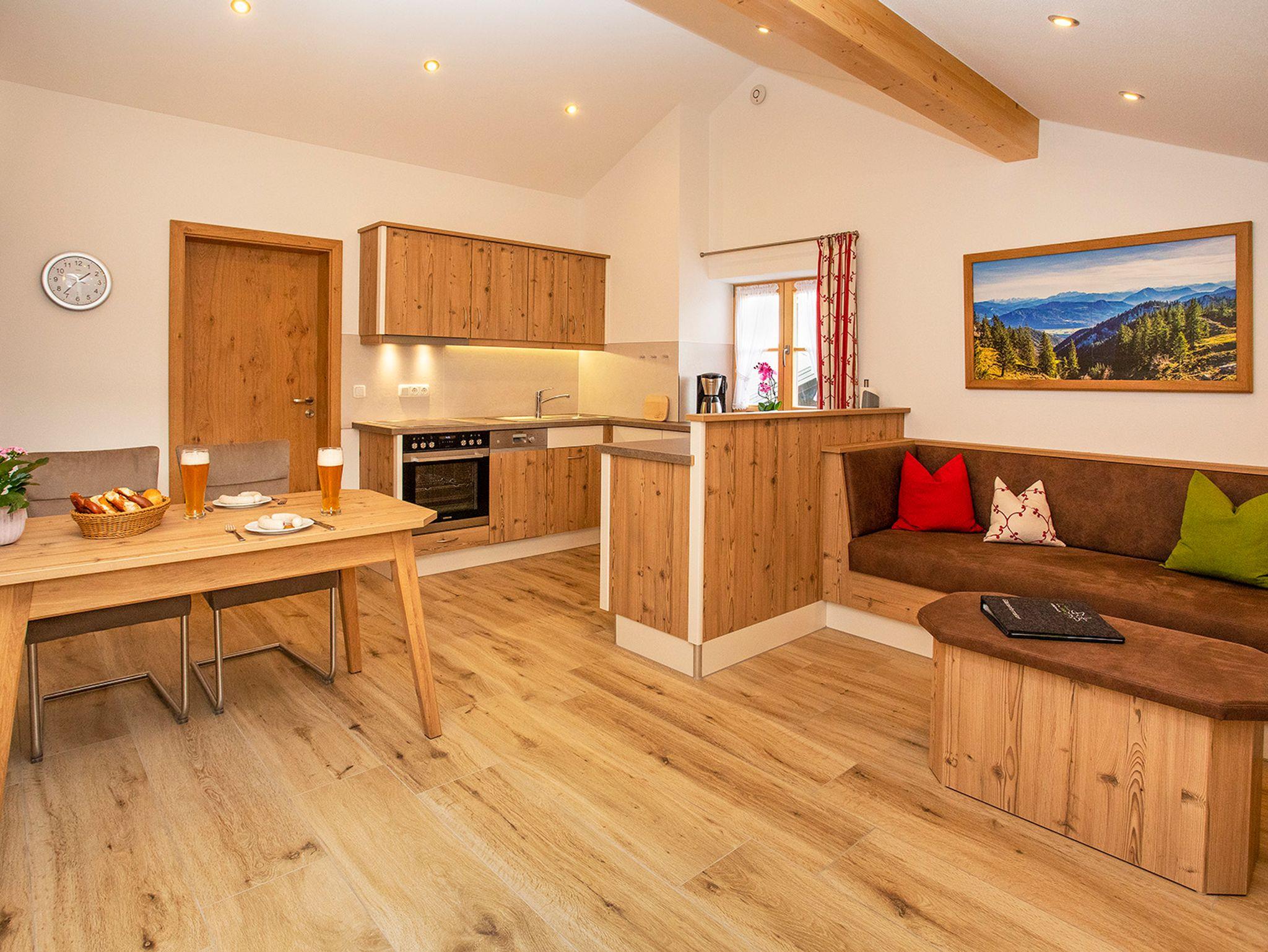 Unser neu renoviertes Ferienhaus liegt ruhig und doch zentral am Ortsrand von Bernau. Die 5 Wohnungen sind mit voll ausgestatteten Küchen, Flat-TV, Safe, mit stilvollen Möbeln vom Schreiner eingerichtet udn haben alle Süd-Balkon oder Terrasse mit Blick in die Berge. Zudem steht allen eine Waschmaschine, Trockner, Gartennutzung, Fahrradgarage und ausreichend Parkplätze zur Verfügung. Bäcker und Supermarkt sind nicht weit von unserem Ferienhaus entfernt. Viele Rad- und Wanderwege können direkt vor der Haustür gestartet werden. Das Strandbad am Chiemsee ist gut mit Fahrrad erreichbar. Im Winter ist bei ausreichender Schneelage der Einstieg in eine Langlaufloipe nur 50 m entfernt. Die Skigebiete der Steinplatte, Hochkössen, St. Johann sind ebenfalls in 30-45 min erreichbar.