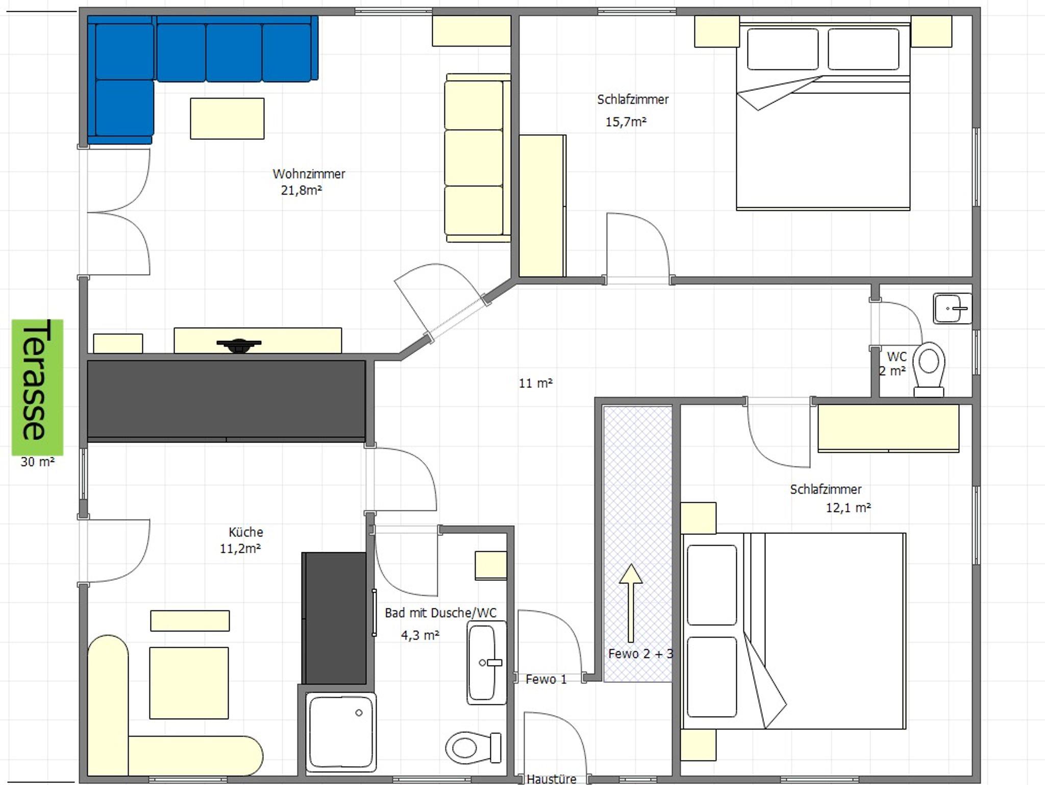 Mit Spülmaschine und Internetanschluß.