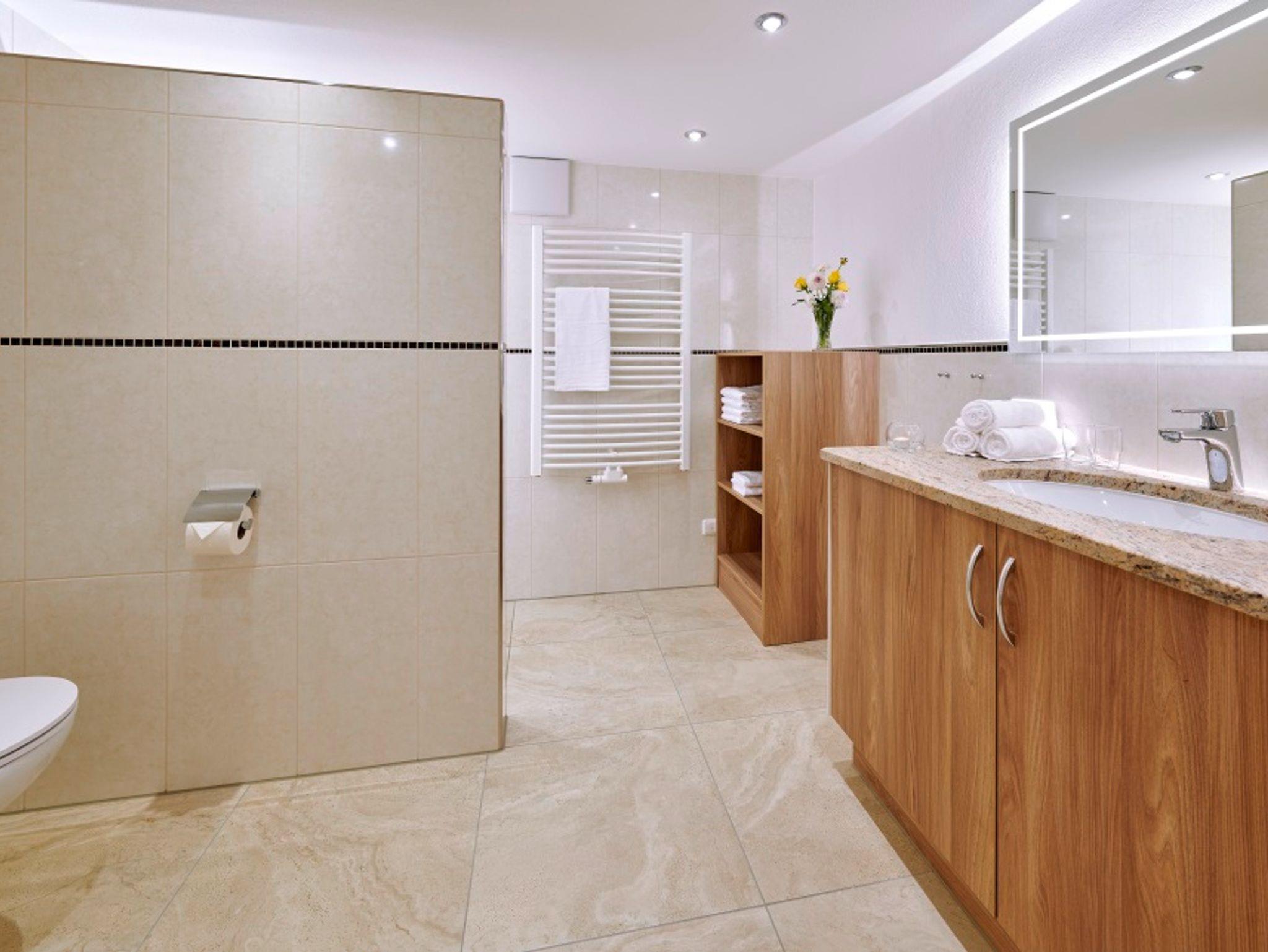 Die Ferienwohnung ist in Richtung Park (Süd-West) ausgerichtet. Alle Fewos sind ausgestattet mit Flachbild-Fernseher 40 bzw. 43 Zoll, Herd mit Backofen, Spülmaschine, Kühlschrank mit Gefrierfach, Kaffeemaschine, Toaster, Kochgeschirr, Geschirr, Safe, Föhn, WLAN, Geschirrtücher, Bettwäsche und Handtücher.Für alle Gäste: Aufzug, Aufenthaltsraum im EG, Waschmaschine, Trockner im EG, Terrasse im EG, Park (5000 m²) mit Liegen, ausreichend Parkplätze, abschließbare Fahrradgarage und Sauna.