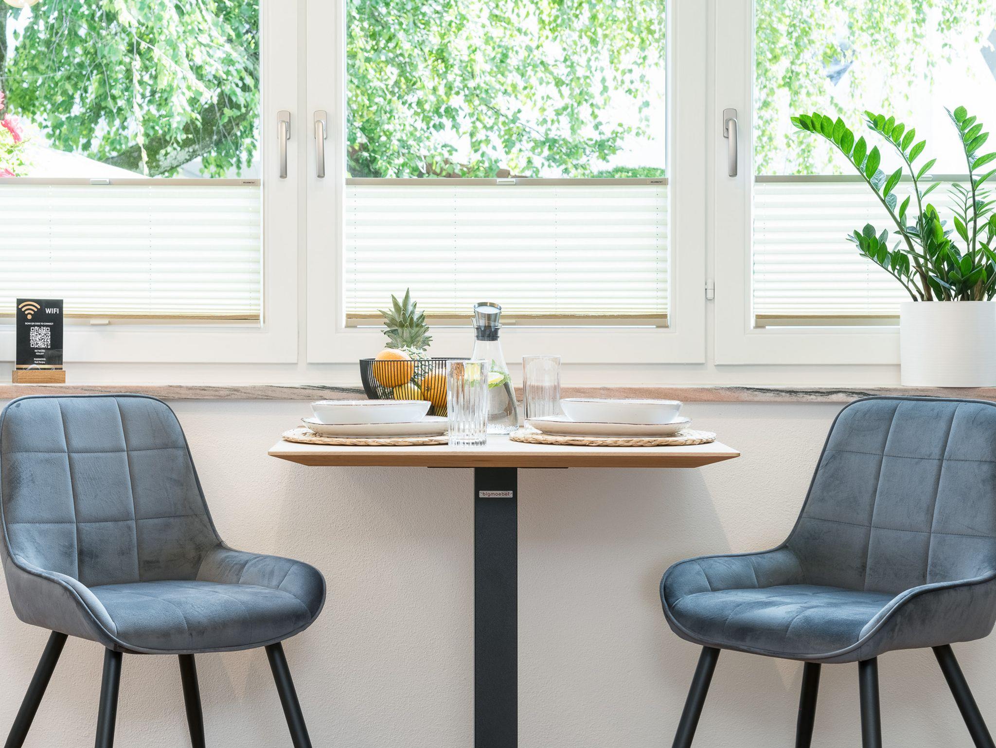 Darüber hinaus bietet die Wohnung einen Essbereich für bis zu drei Personen – perfekt für gemeinsame Mahlzeiten und gesellige Abende.