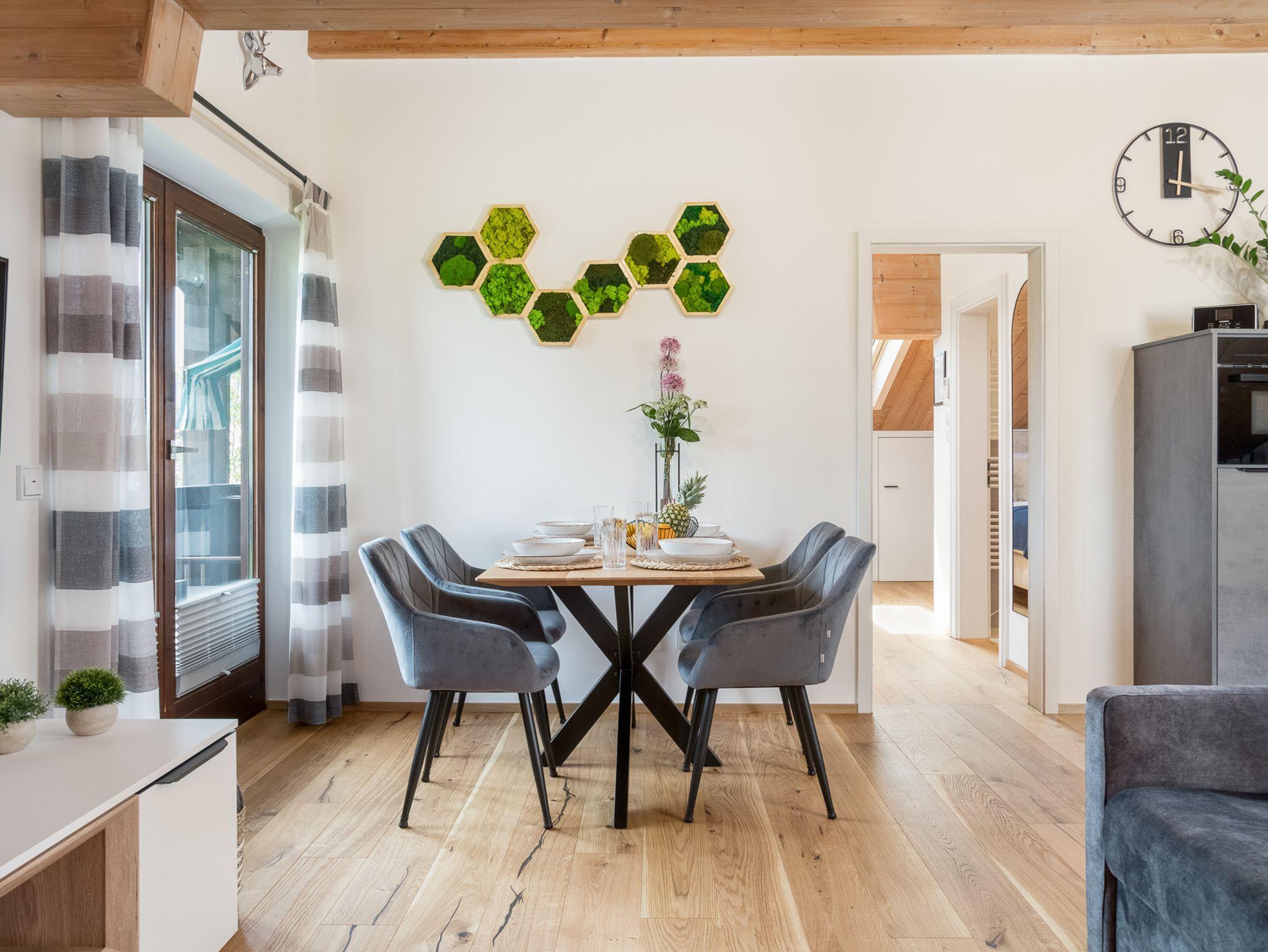 Darüber hinaus bietet die Wohnung einen großzügigen Essbereich für bis zu vier Personen – perfekt für gemeinsame Mahlzeiten und gesellige Abende.