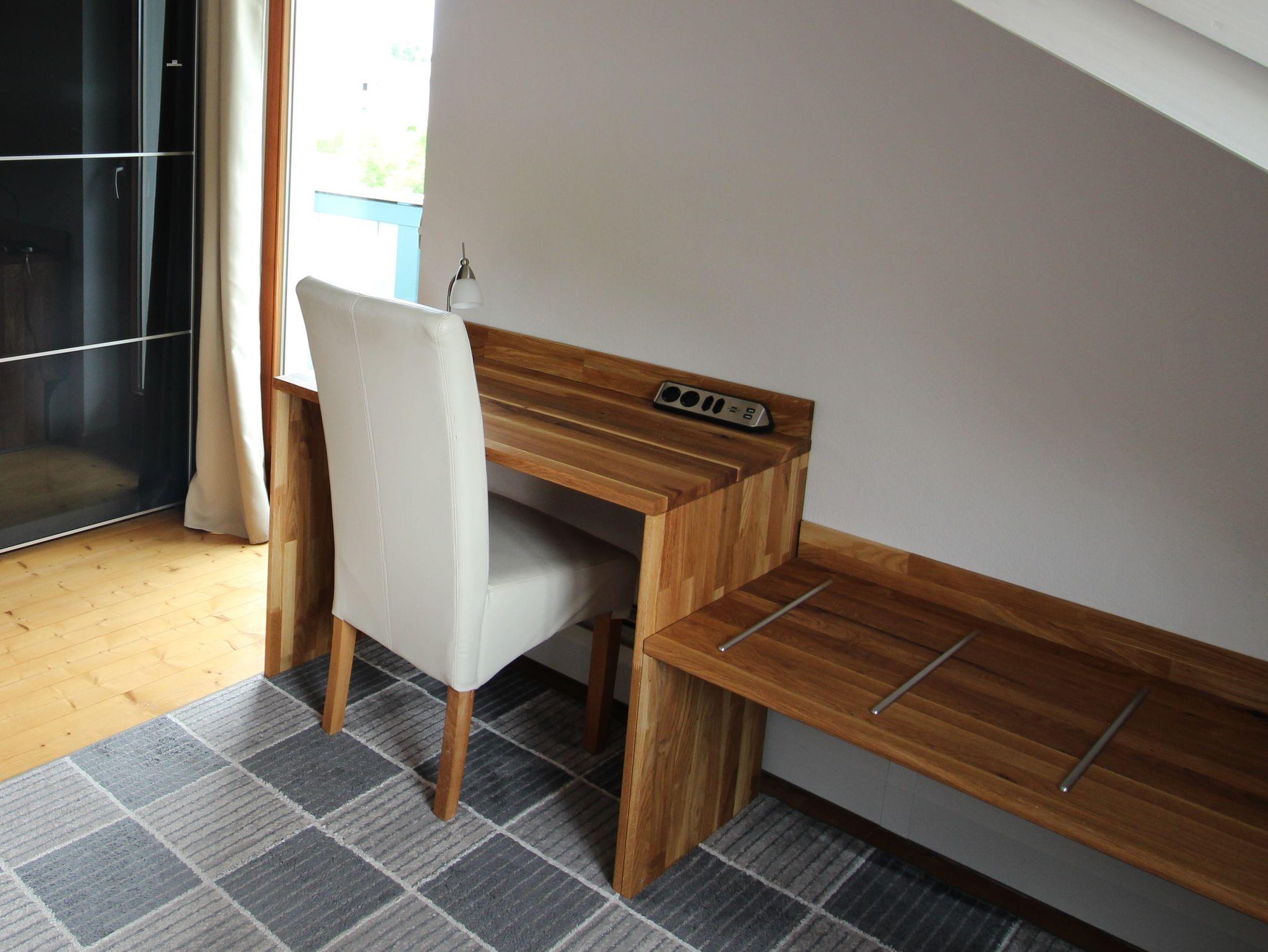 Ein schicker Arbeitsplatz macht die Wohnung ideal für Gäste, die auch im Urlaub produktiv bleiben möchten.