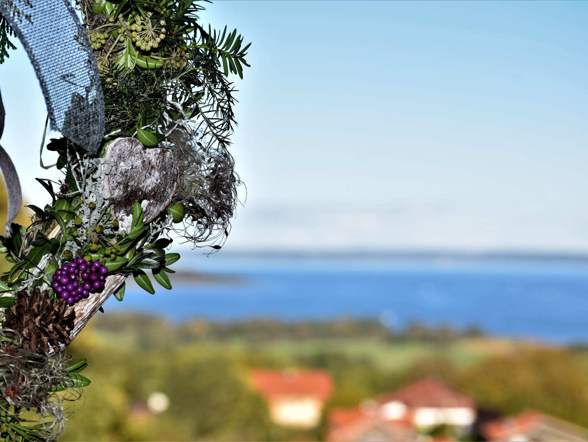 Die neue Ferienwohnung Heublume befindet sich im Dachgeschoss mit Nord-Ost Ausrichtung. Die Wohnung ist in dezenten, angenehmen Farbtönen gehalten um für Ruhe und Entspannung zu sorgen. Es gibt zwei separate Schlafzimmer, eins davon mit Etagenbett, sowie die Möglichkeit ein Babybett aufzustellen. Im Bad finden Sie eine begehbare Dusche vor. Die Wohnküche verfügt über eine voll ausgestattete Küchenzeile mit Spülmaschine, Essbereich, sowie TV und Sofa. Von hier aus haben Sie direkten Zugang auf den Balkon, wo Sie den herrlichen Blick in die Chiemgauer Alpen und über den Chiemsee genießen können. Bett- und Tischwäsche, Handtücher sowie Kinderausstattung sind natürlich inbegriffen. WLAN inklusive. Waschmaschine und Trockner sind im Gemeinschaftsbereich vorhanden.