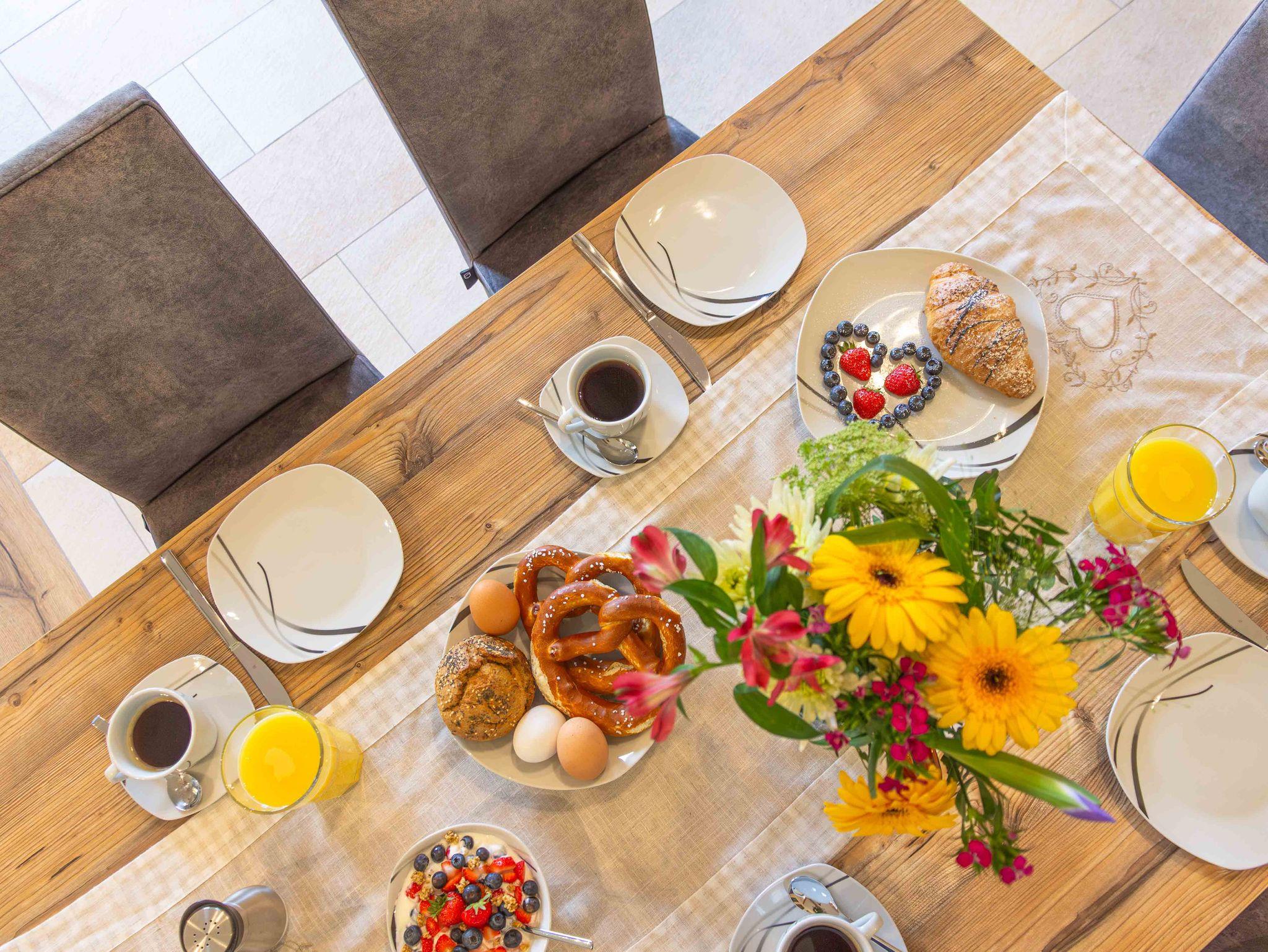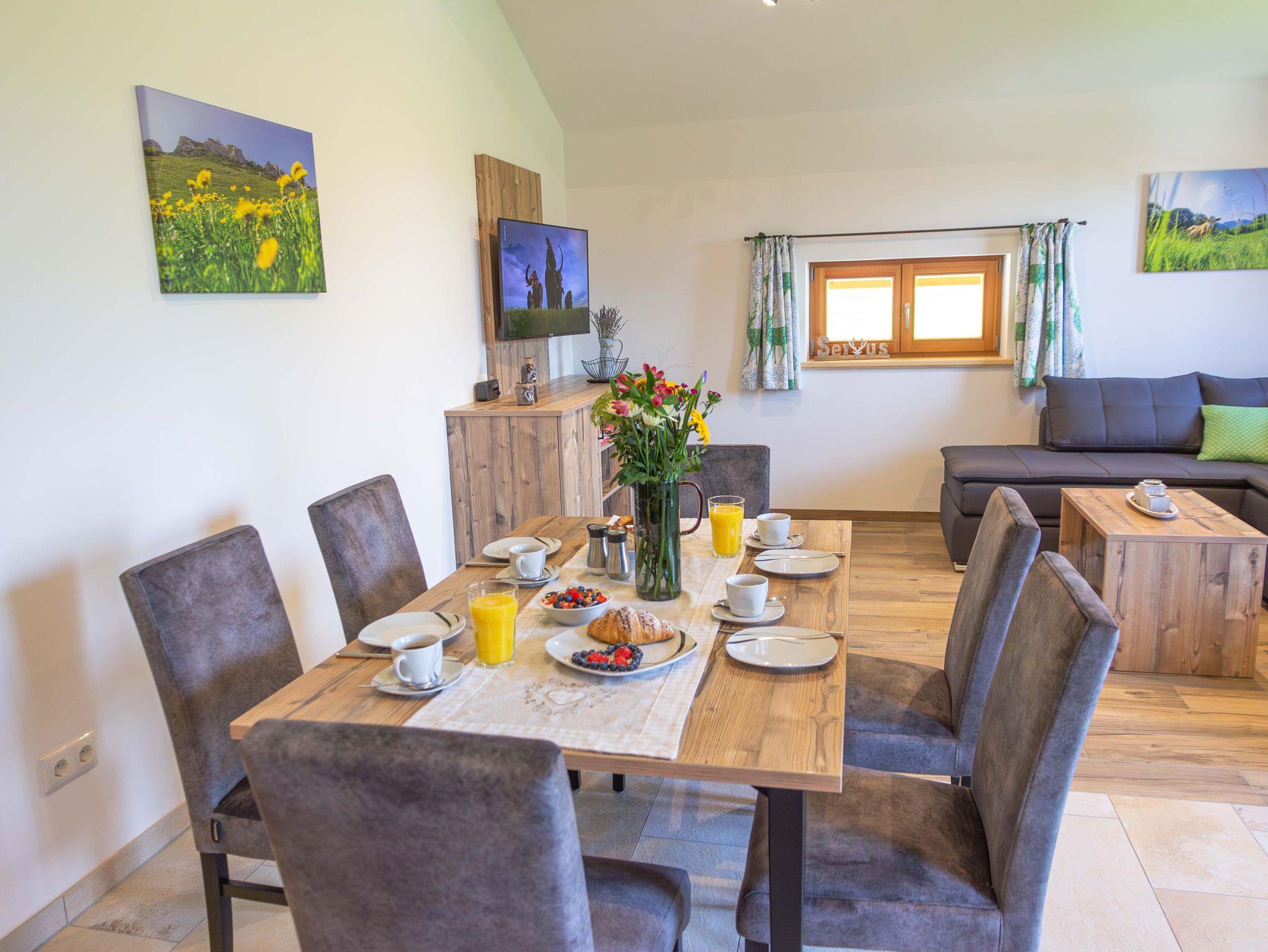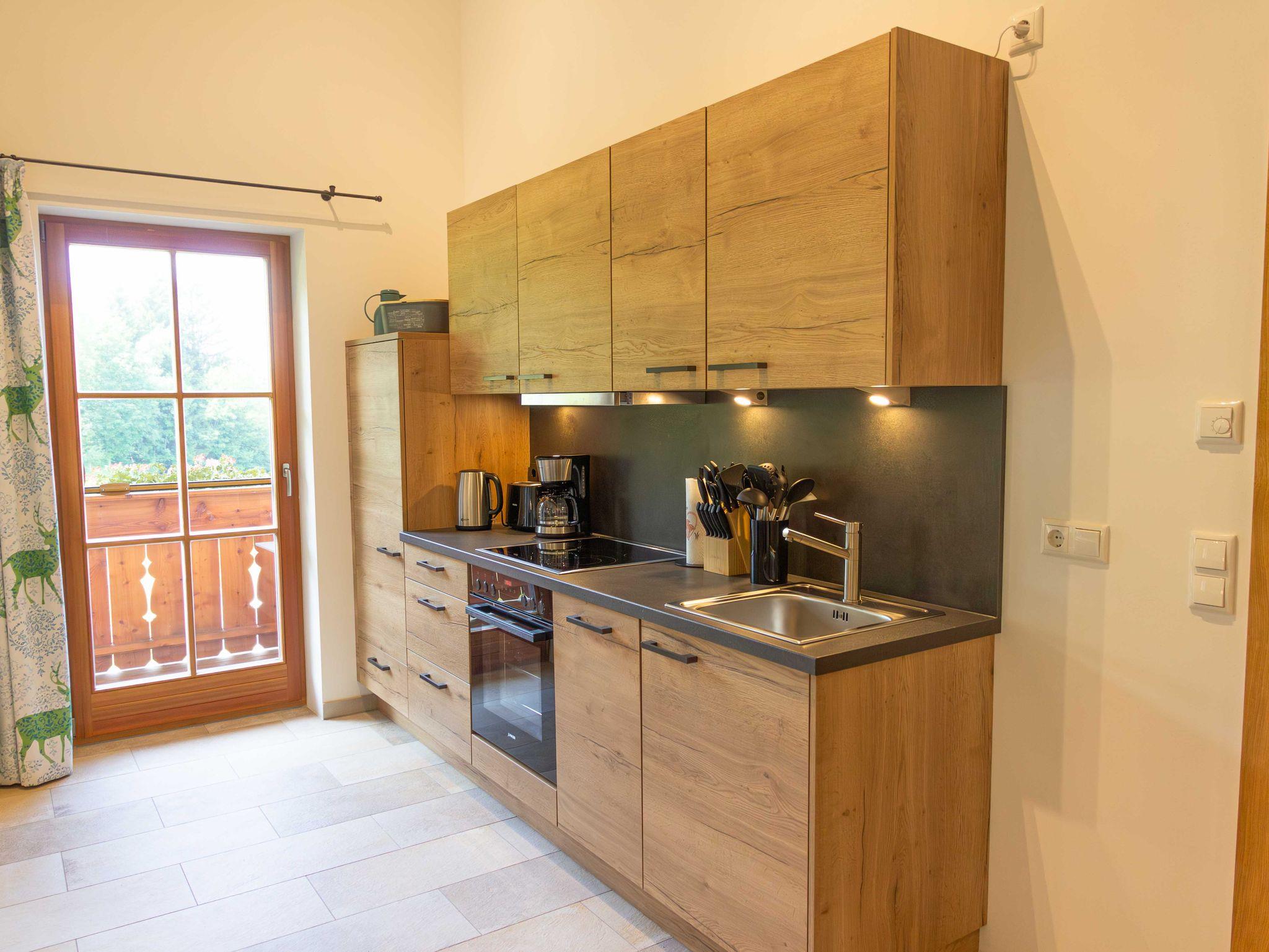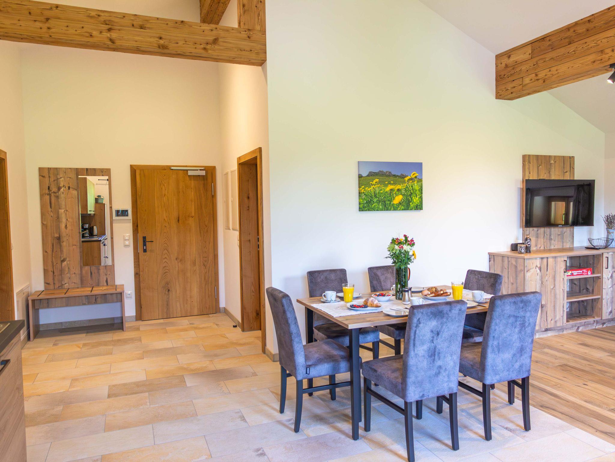 Mit der „Kampenwand“-Wohnung bieten wir Ihnen eine exklusive Unterkunft, die sich ideal für Familien eignet und eine gemütliche Atmosphäre bietet. Sie zeichnet sich durch ihren großen Wohnbereich mit einer modernen Küche aus. Vom Balkon aus können Sie den direkten Blick auf die umliegenden Wälder und Wiesen genießen. Wir laden Sie herzlich dazu ein, Ihren Urlaub auf dem Wieserhof zu verbringen und freuen uns auf Ihren Besuch.