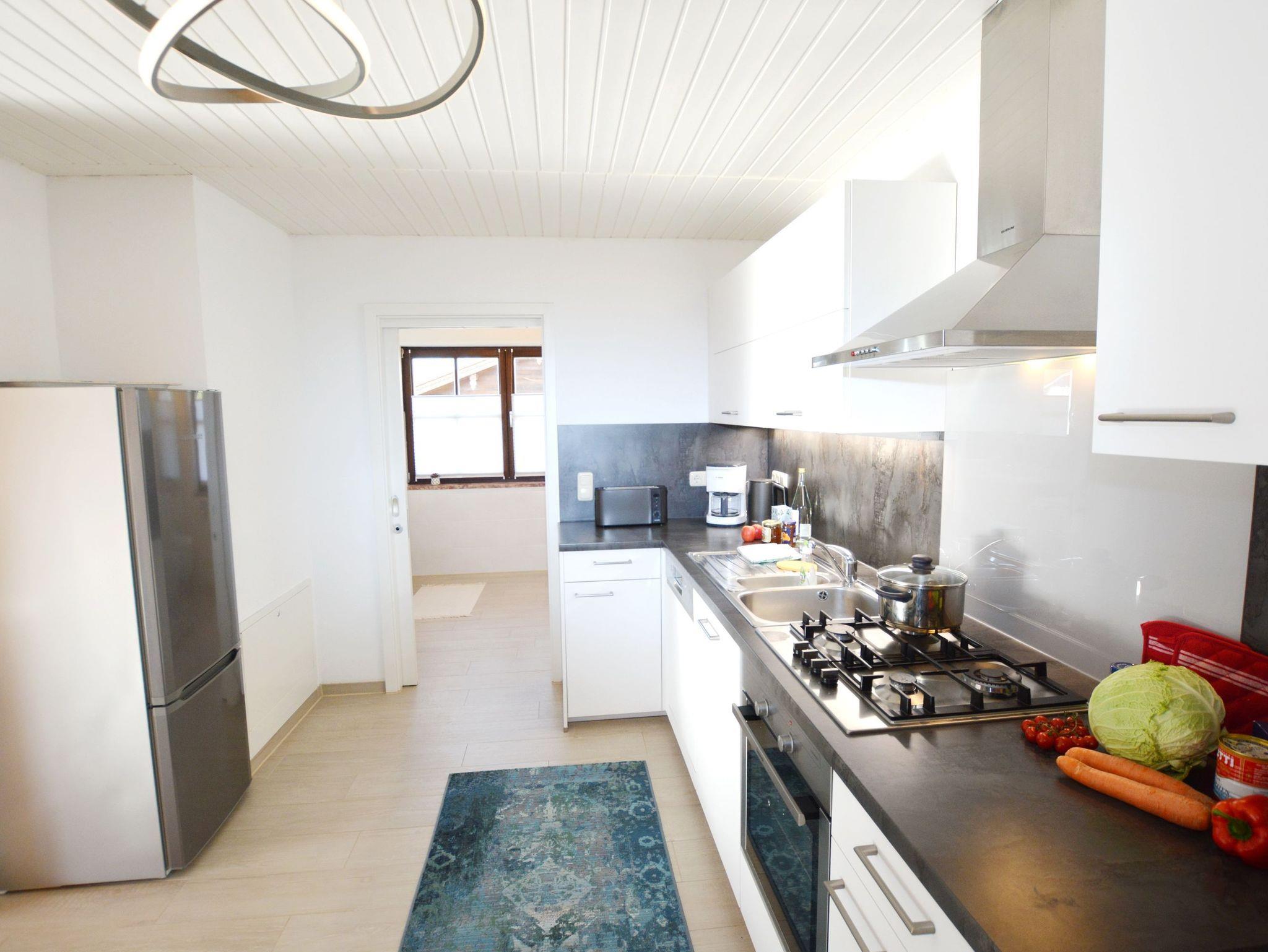 Das Herzstück der Ferienwohnung ist der offene große Wohn- und Essbereich mit großer Fensterfront, einem Esstisch, Flachbildfernseher und zwei Sofas. Durch einen Bogen ist die offene Küche optisch vom Wohnbereich getrennt. Die Küche ist mit allen wichtigen Utensilien, die zum Kochen benötigt werden, ausgestattet. Vom Wohnbereich aus betreten Sie über die Schiebetüre den Süd-Balkon, um die schöne Urlaubszeit zu genießen und Blick auf die Berge zu erhaschen. Ein zweiter Balkon zur Südseite ist über ein Schlafzimmer zu betreten. Das Domizil umfasst zwei Schlafzimmer, welche jeweils über ein Doppelbett und genügend Stauraum verfügen. Zusätzlich bietet ein Schlafraum ein Schlafsofa an, weshalb bis zu 5 Personen eine schöne Auszeit vom Alltag im „MountainView“ verbringen können. Modern präsentiert sich das Badezimmer, ausgestattet mit Fenster, WC, Dusche, Bidet, Waschbecken, Waschmaschine, Spiegel und Haartrockner.