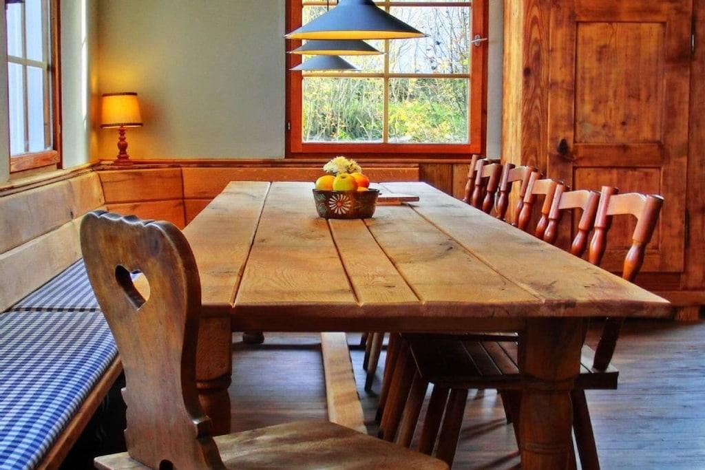 Når du træder ind i det rustikke Schwarzwald-bondehus i Bernau, vil du blive mødt af det varme lys, der strømmer gennem de gamle trævinduer og oplyser trævæggene. Duften af træ gennemsyrer luften, da det tidligere bondehus med den tilstødende kostald er et rustikt træhus i Bernau med de typiske Schwarzwald-spån som en varm beklædning og mange gamle trævægge indeni. Det dufter af gran og fyr. Schwarzwald-bondehuset er ideelt til afslappende dage, da du finder 7 himmelske soveværelser med dobbeltsenge (med plads til 14) fordelt på tre etager, samt 2 rummelige bondestuer og et bondekøkken, der tilbyder romantisk komfort til en uforglemmelig sammenkomst i idylliske, historiske omgivelser.