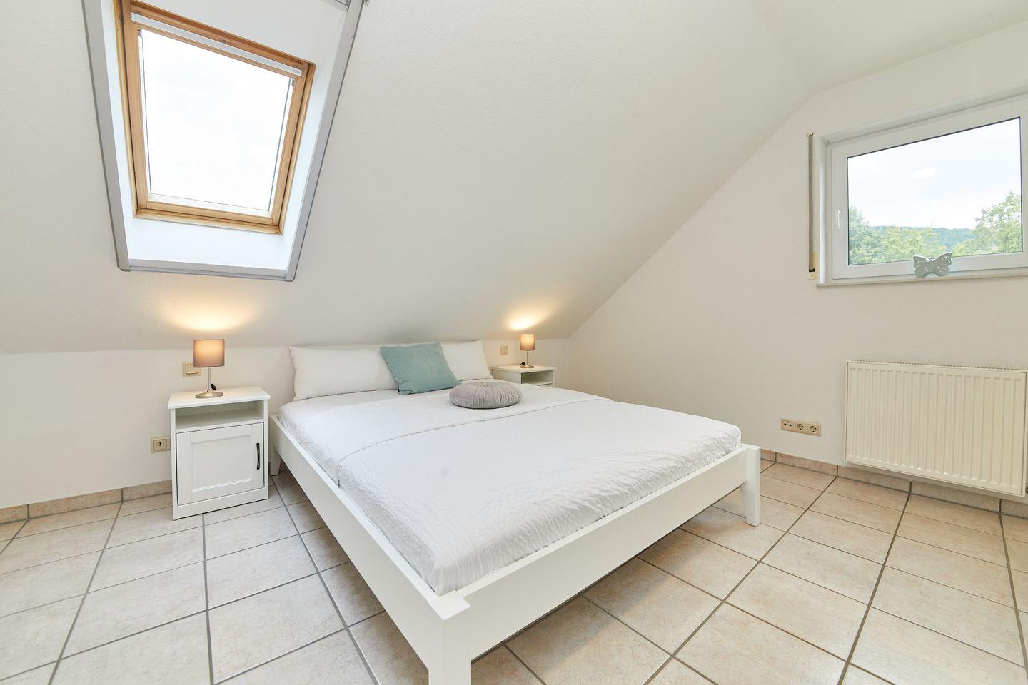 Anschrift:Goldbachstraße 5954470 Bernkastel-Kues OT AndelIm Dachgeschoss gelegen, Balkon mit wunderbarem Moselblick.Ausstattung:2 Schlafzimmer (2 x 1,60 x 2,00 m)Wohn- / Esszimmer mit Küche1 Bad mit Badewanne und Dusche1 Gäste WCAbstellraumBalkon1 Stellplatz vorm HausWLAN