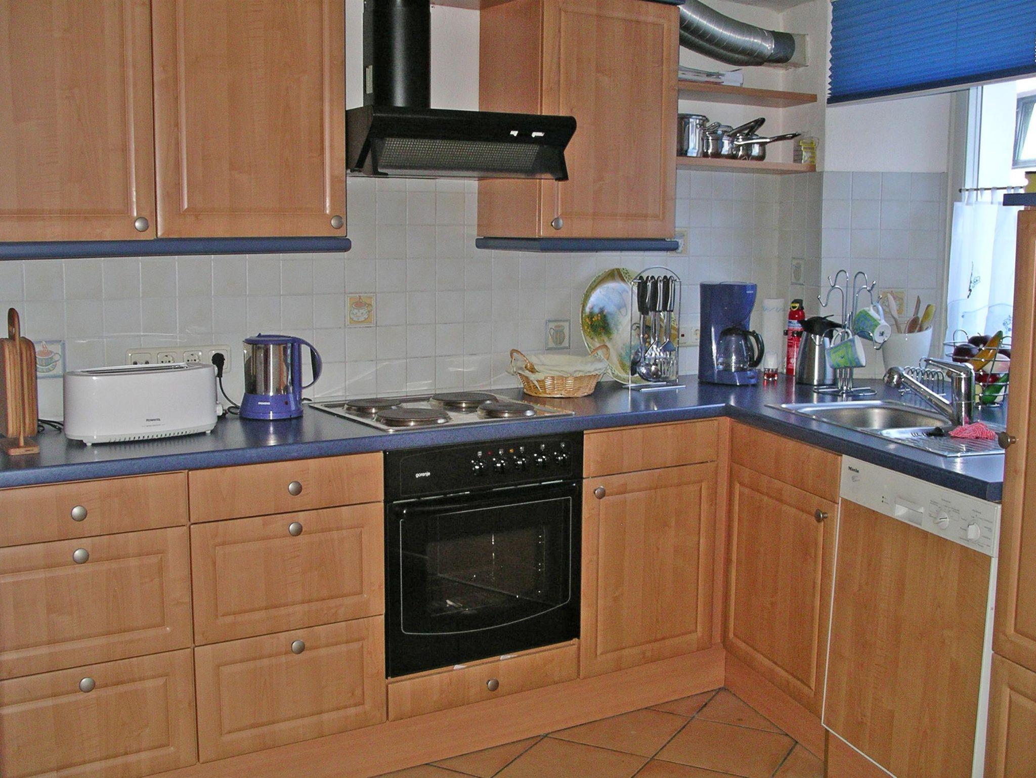 • Komplett eingerichtete Küche mit Tisch und Stühlen im Erdgeschoss