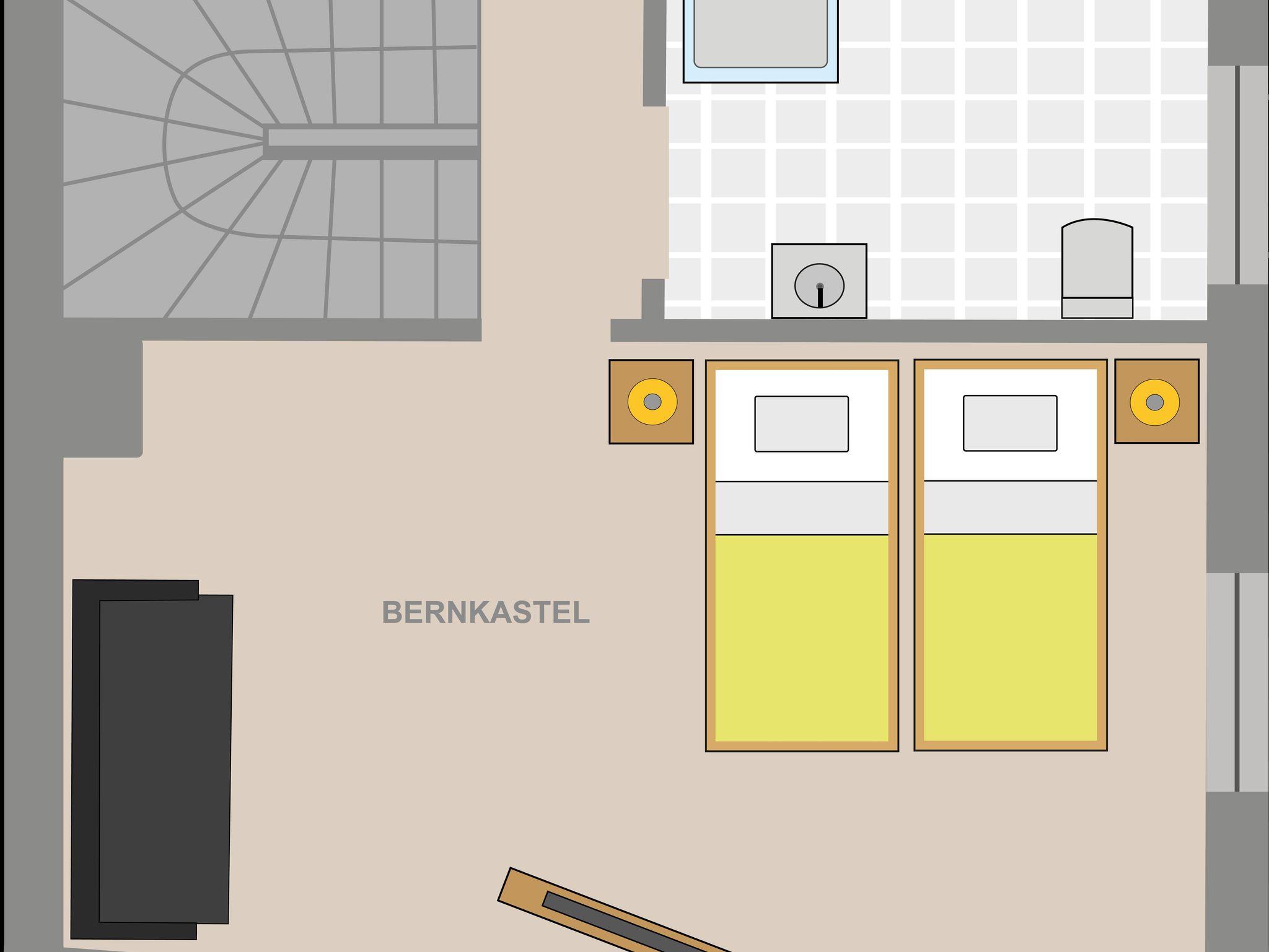 • Schlafzimmer Bernkastel 1 OG: 2x Einzelbetten (je 80x200cm)