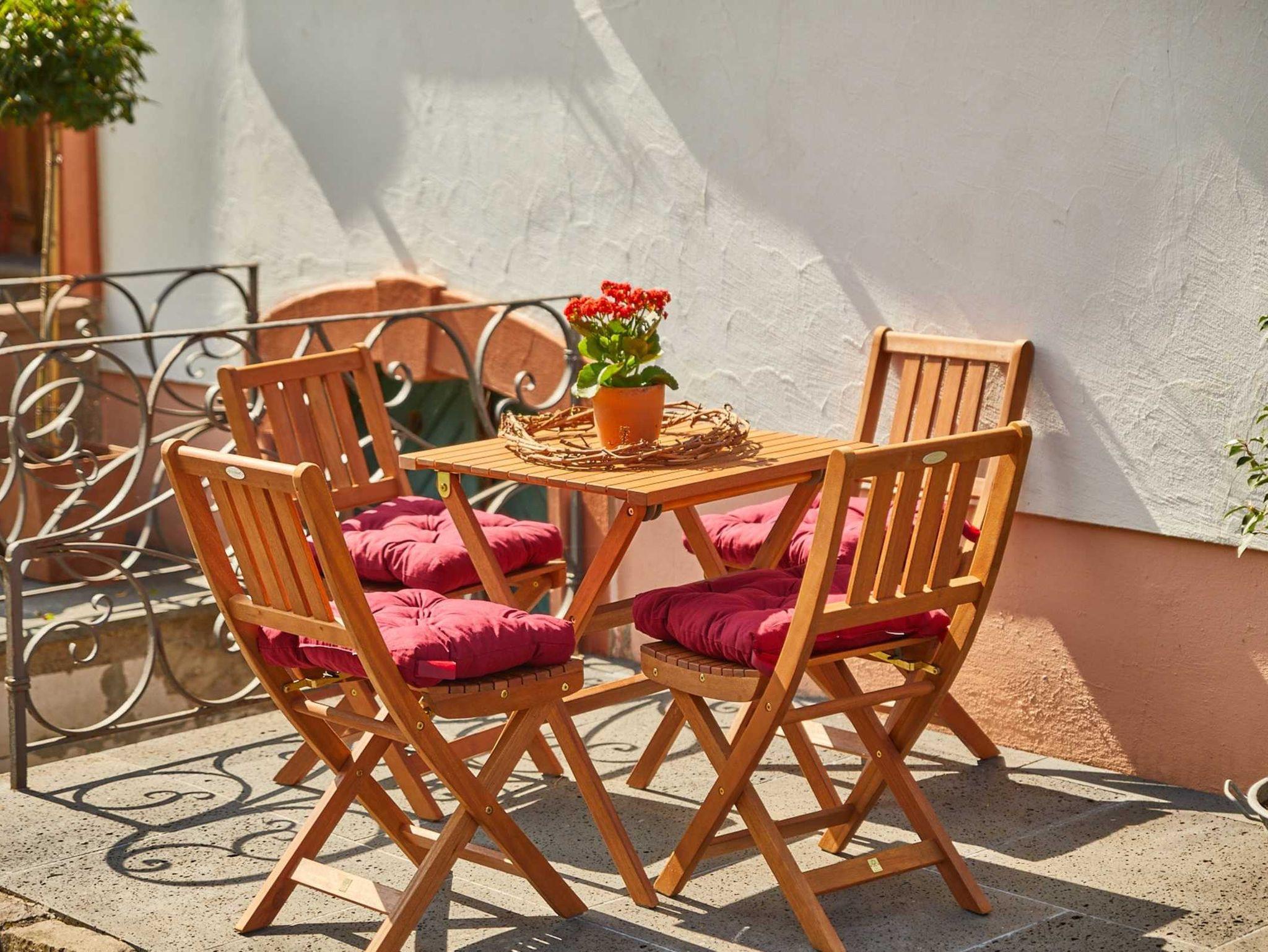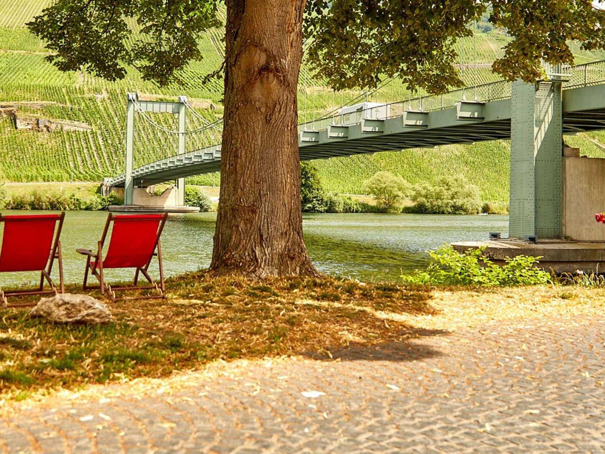 Vor dem Haus und direkt am Moselufer stehen unseren Gästen Sitz- und Verweilmöglichkeiten zur Verfügung.