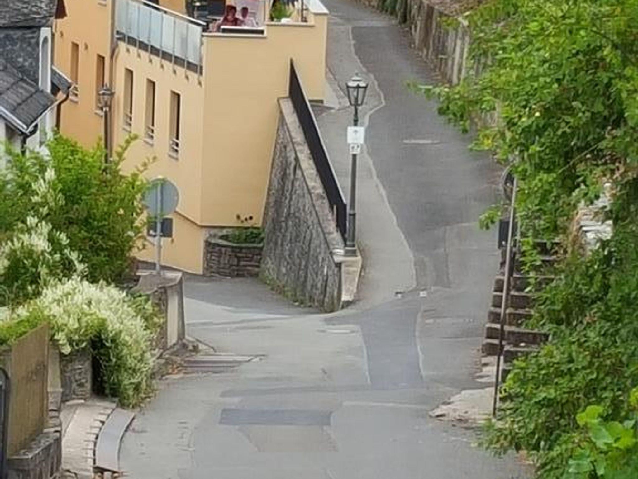 Unser modernes Haus mit 35 qm großer Gemeinschafts-Sonnenterrasse liegt unterhalb der Burg Landshut und der Weinberge, dennoch zentral zur Altstadt (3 Min.) und zur Mosel (2 Min.), in der weltbekannten und historischen Stadt Bernkastel-Kues. Die Gemeinschaftsterasse ist vom kleinen Apartment über den Flur, vom großen Apartment und vom Appartment Weinprinzessin über eine Treppe zu erreichen.