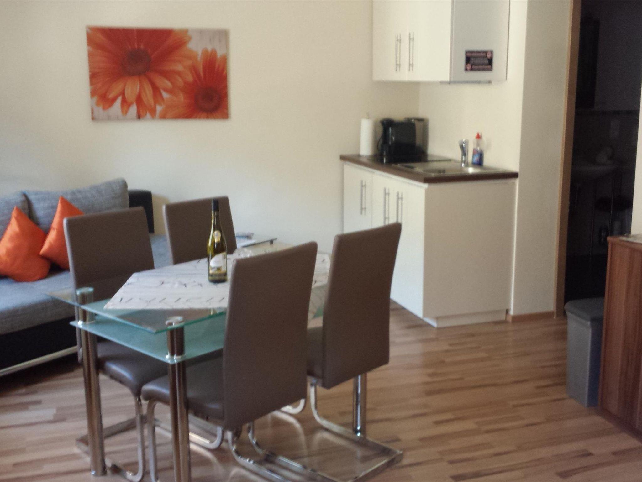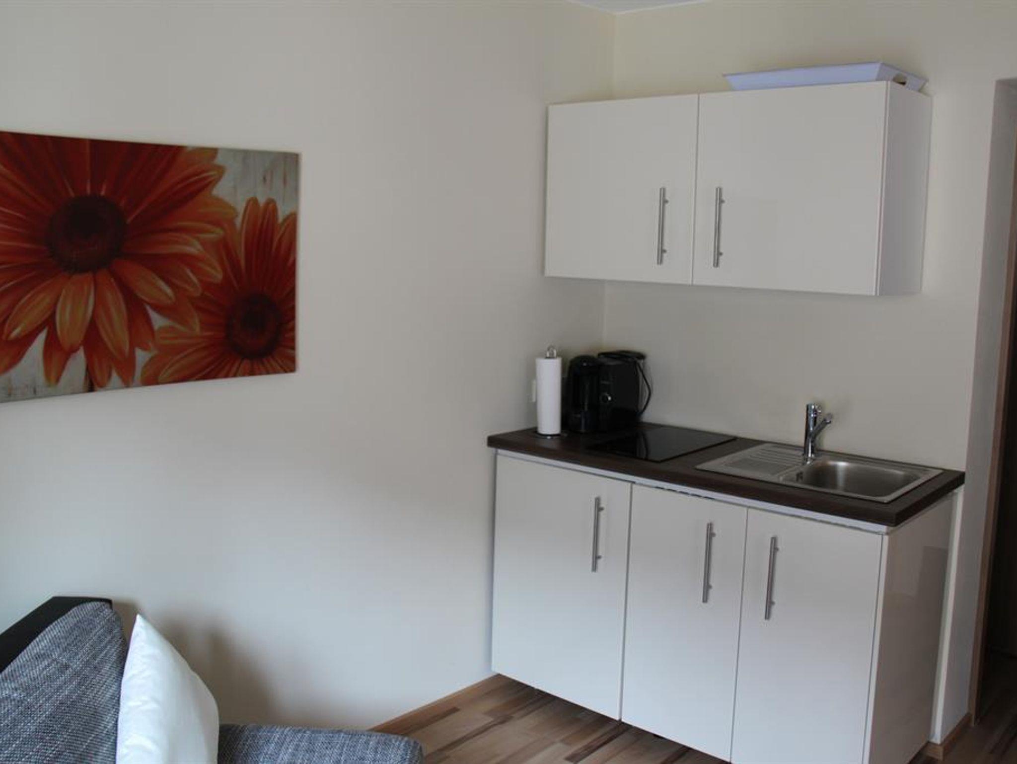 Die Ein-Zimmer-Appartements (25 m², 32 m² und 35 m²) bestehen aus einem Wohn-Schlafraum mit bequemer Sitzgelegenheit, kleiner Küchenzeile mit Kühlschrank und Kaffeemaschine. Küchenwäsche, Spülmittel und Küchenrolle sind vorhanden.