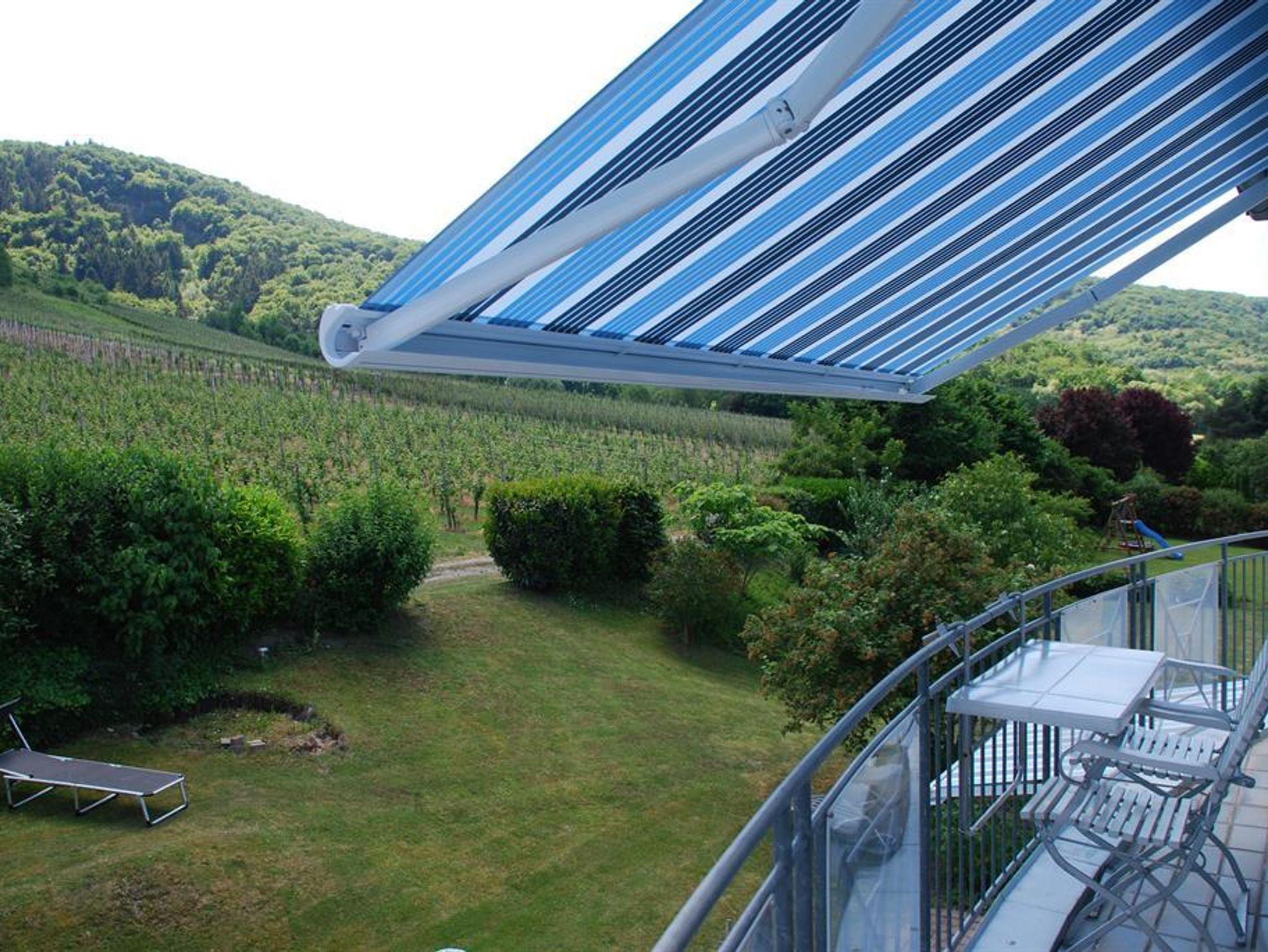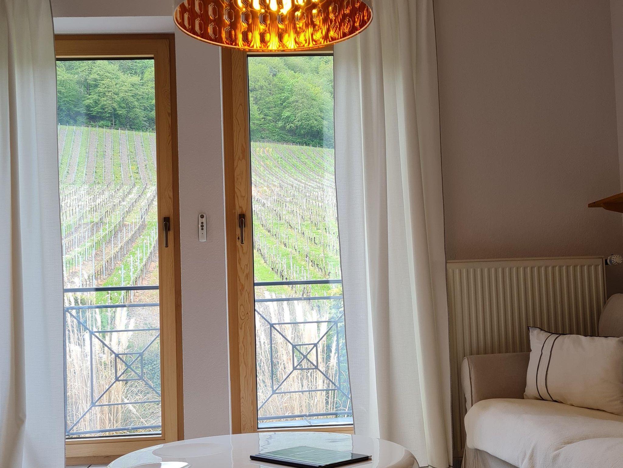 Ferienwohnung Schlossberg mit kleinem Balkon mit Sicht in die Weinberge. Für 2-4 Personen.