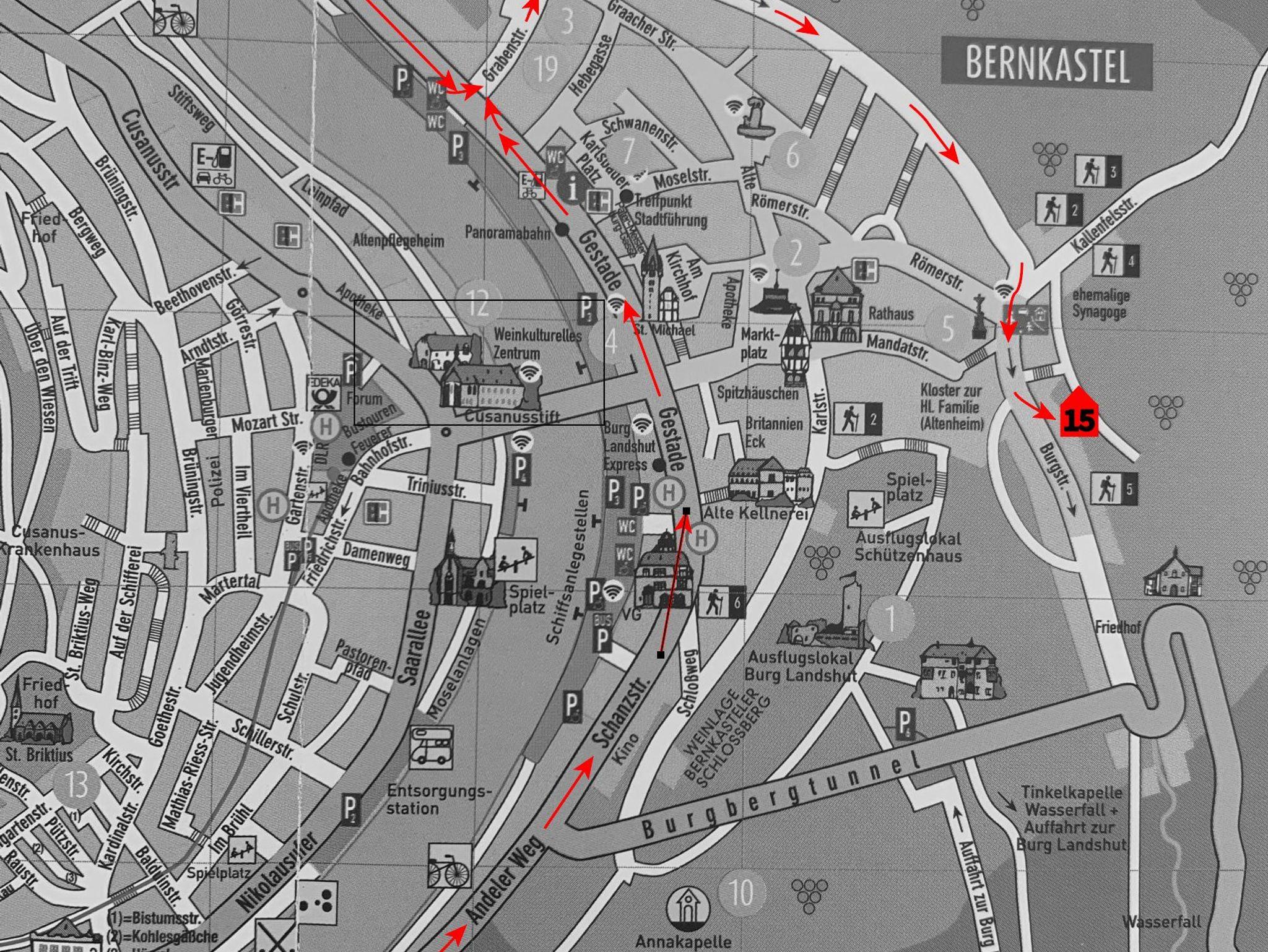 Entfernung zum Mosel Marktplatz 200 m, zum Fluß 500 m. Restaurants, Cafés und Weinstuben erreichen Sie leicht zu Fuß. Das Weingut Hansen-Lauer befindet sich direkt gegenüber.