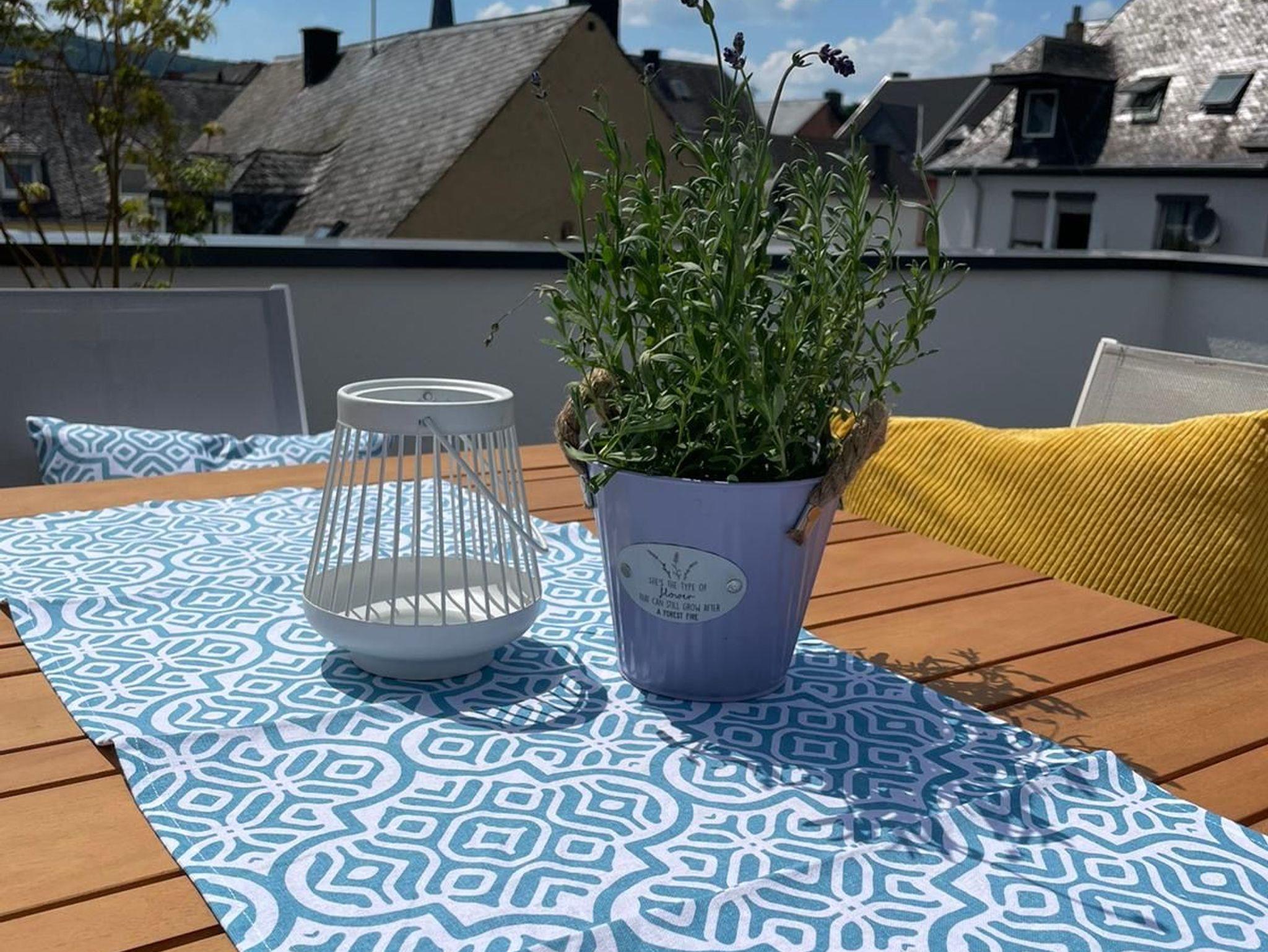 Treten Sie ein und lassen Sie sich von der einladenden Atmosphäre dieser besonderen Ferienwohnung im DG des Weingartenhauses verzaubern. Eine stilvolle Einrichtung, hochwertige Echtholzböden und eine gehobene Ausstattung bieten auf großzügigen 75 qm alles, was Sie für einen erholsamen und erlebnisreichen Urlaub benötigen. Das Highlight der Wohnung ist die große Dachterrasse mit Blick auf die Burg Landshut.