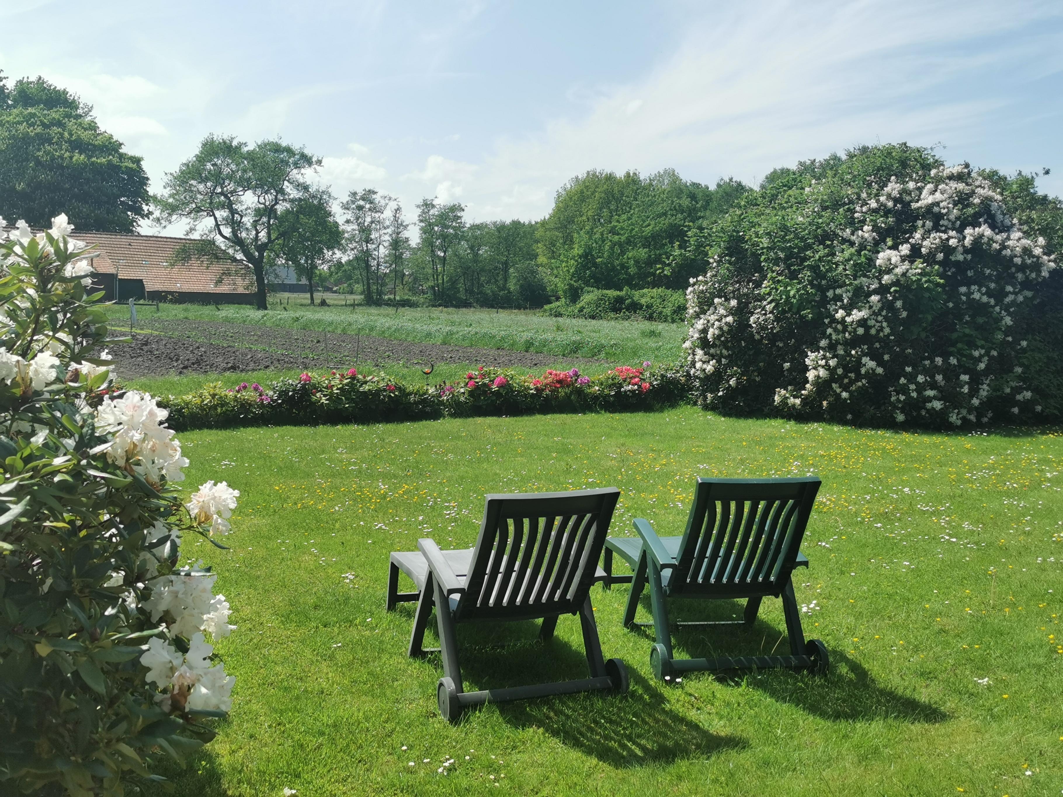 Die Wohnung samt Eingangsbereich ist komplett separat und der Garten von den Seiten uneinsehbar und nach vorne weiten Panoramablick auf Wiese und Pferde.