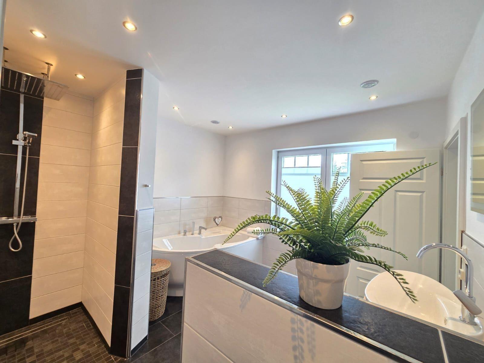 Die Ferienwohnung bietet modernen Komfort und eine durchdachte Ausstattung für einen angenehmen Aufenthalt. Sie verfügt über zwei Schlafzimmer, eines mit einem Doppelbett und eines mit zwei Einzelbetten, sowie zwei Badezimmer, eines mit Badewanne und eines mit Dusche. Die offene Küche ist vollständig ausgestattet und enthält einen Elektro-/Gasherd, Geschirrspüler, Kühlschrank, Backofen, Kaffeemaschine und Toaster. Für Familien steht ein Kinderhochstuhl bereit. Die Wohnung ist allergikergeeignet und bietet Internet mit WLAN, einen Fernseher mit DVD-/Blu-Ray-Player und eine HiFi-Anlage für Unterhaltung. Praktische Annehmlichkeiten wie Waschmaschine, Bügeleisen und ein Starterset für die ersten Tage runden das Angebot ab. Zum Entspannen stehen ein Sofa, Sessel und ein Esstisch bereit. Ein Parkplatz sowie Fliegengitter und Ventilator sorgen für zusätzlichen Komfort. Die Ferienwohnung ist ideal für Familien und Erholungssuchende.
