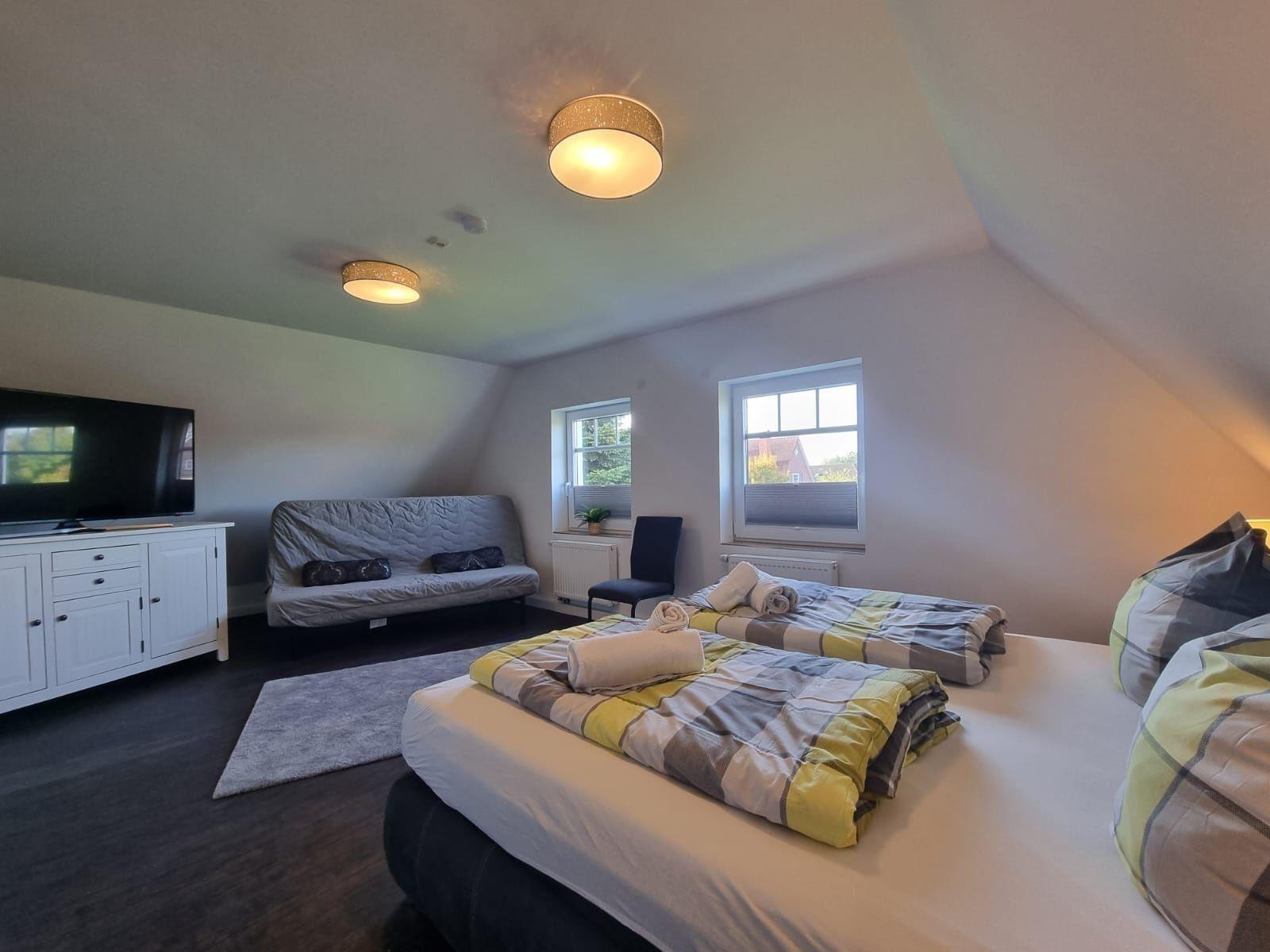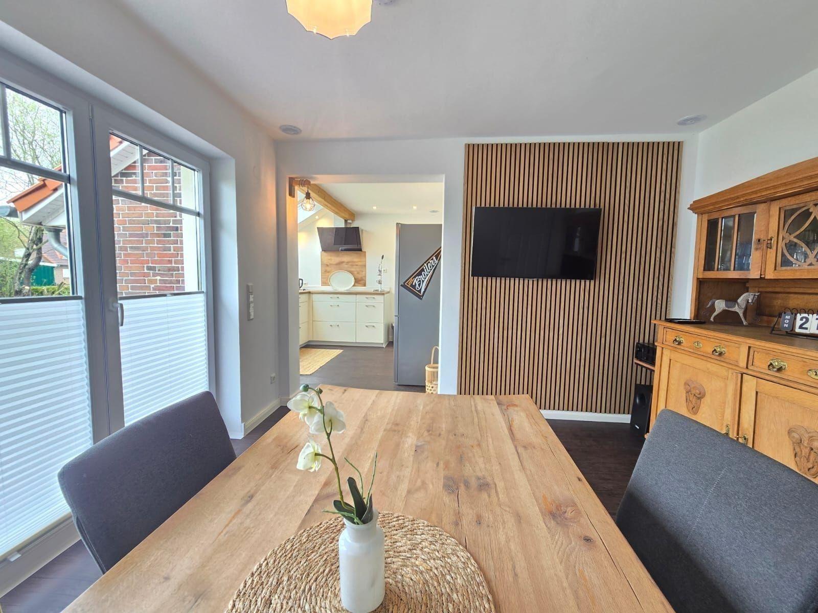 Die Ferienwohnung liegt malerisch in Berumbur, einem charmanten Dorf, das eine ruhige und entspannende Atmosphäre bietet. Die Umgebung lädt zu vielfältigen Aktivitäten ein: Angeln und Bootsausflüge sind nur wenige Kilometer entfernt. Für Sportbegeisterte stehen Golfplätze und Reitmöglichkeiten in einer Entfernung von etwa 5 Kilometern bereit. Radfahrer und Walker finden reizvolle Strecken in der Umgebung, und ein schöner Strand zum Baden sowie Windsurfen liegt lediglich 10 Kilometer entfernt. Die region bietet zudem Einkaufsmöglichkeiten und verschiedene gastronomische Angebote. Familien können sich auf Spielplätze und Minigolf freuen, während Wellnessliebhaber Massagen und Kosmetikbehandlungen in der Nähe genießen können. Für Kulturinteressierte gibt es ein Museum, das in rund 7 Kilometern erreichbar ist. Diese Ferienwohnung ist somit der ideale Ausgangspunkt, um die reizvolle Nordseeregion zu erkunden und die zahlreichen Freizeitmöglichkeiten zu nutzen.