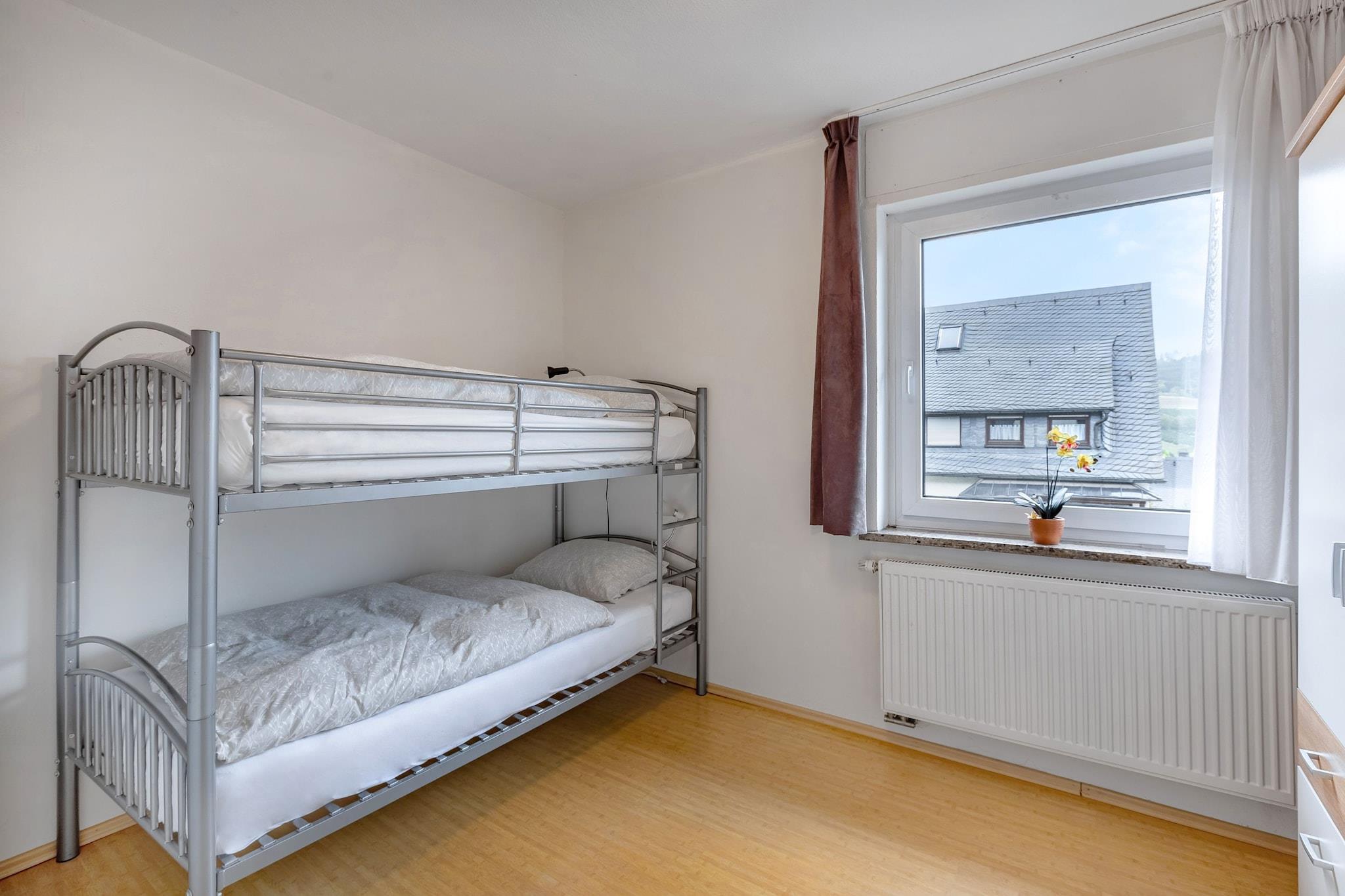 Denne lyse og moderne 3-værelses lejlighed i Velmede tilbyder et fredeligt tilflugtssted ved skoven for op til 6 gæster, ideel til familier eller venner. Beliggende direkte på en vandresti, har den en privat terrasse, elektrisk grill og en indhegnet have med liggestole, parasoller og cykelrum. Indendørs kan du nyde en rummelig stue med internationale tv-kanaler, en stereoenhed og en spiseplads ved siden af et veludstyret køkken. Regionen er et paradis for vintersportsentusiaster med en skilift kun 15 km væk, og cykeludlejning og swimmingpool på 7 km2. Byens centrum og offentlig transport er kun 200 m, mens restauranter (500 m) og supermarkeder (2 km) er inden for rækkevidde. Arnsbergskoven begynder lige udenfor og byder på naturskønne stier året rundt. Familier vil sætte pris på barnesengen, højstolen, legetøjet og trampolinen, mens praktiske faciliteter såsom centralvarme, garage og cykelopbevaring sikrer et behageligt ophold. Den nærmeste lufthavn er 67,2 km, hvilket gør dette til en godt forbundet, men alligevel rolig base i Sauerland.