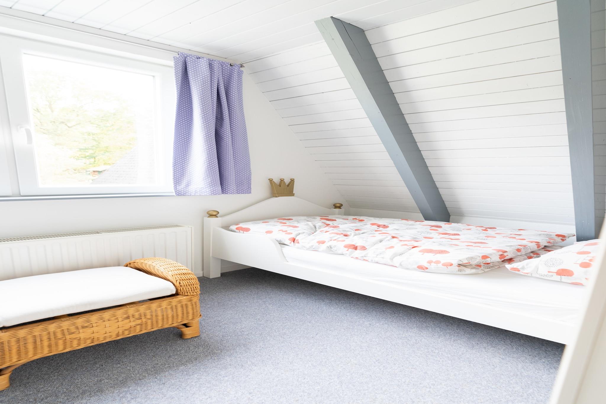 Stueetage: (Indgang , gang, åbent køkken(elkedel, brødrister, komfur(Komfur med fire kogeplader), kaffemaskine(kaffetragt), ovn, vaffeljern, mikrobølgeovn, opvaskemaskine , køleskab(+ fryser)), stue / spisestue(Fjernsyn(fladskærm, parabol), spisebord, stereoanlæg), badeværelse(bruser, håndvask, føntørrer), toilet(håndvask)) Loft: (soveværelse(dobbeltseng(180 x 200 cm)), soveværelse(enkeltseng(80 x 200 cm), enkeltseng(80 x 200 cm))) tremmeseng, varme(central), terrasse(privat, 20 m2), have(privat, delvist indhegnet, 100 m2), cykelopbevaring, havemøbler, grill(på anmodning), parkering, liggestole, Parasol, sandkasse, legeredskaber, barnestol, trappegitter, hundekurv, hyggespil, legetøj, Ladestation til el-biler