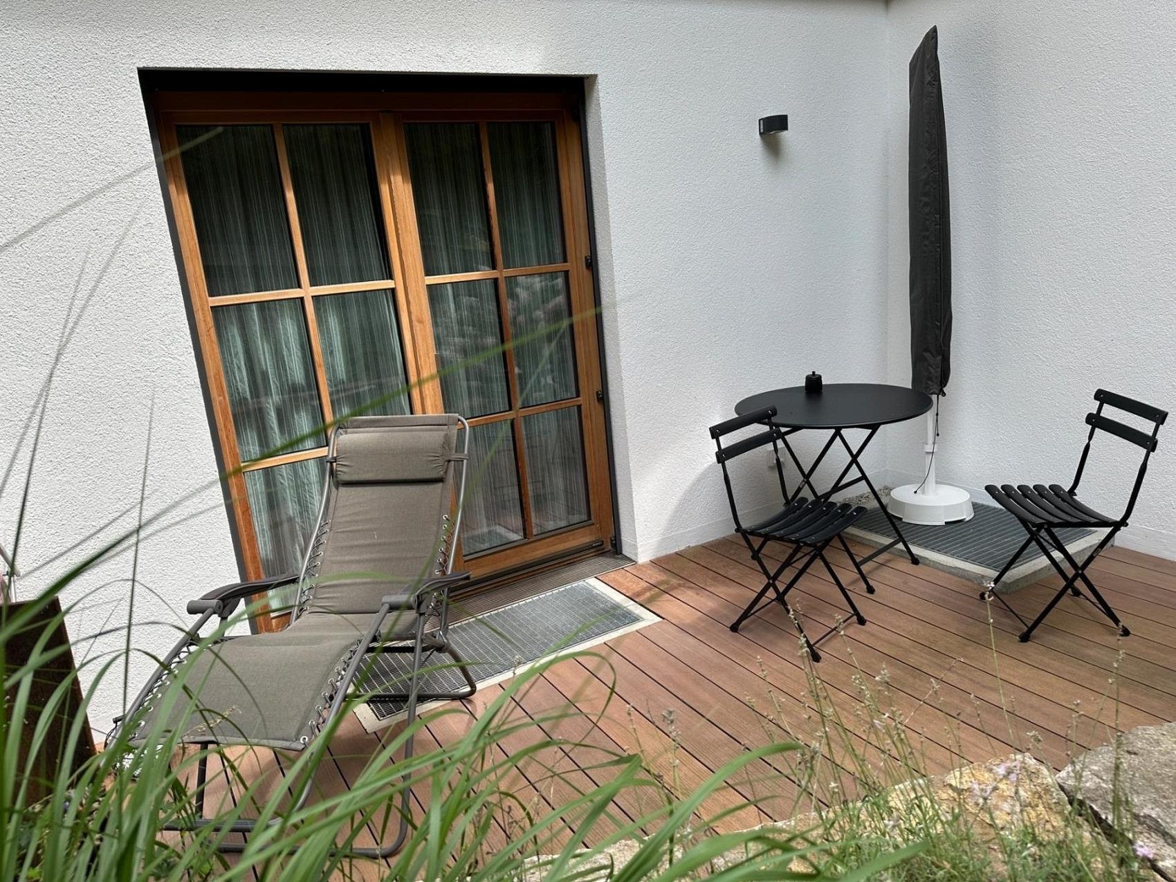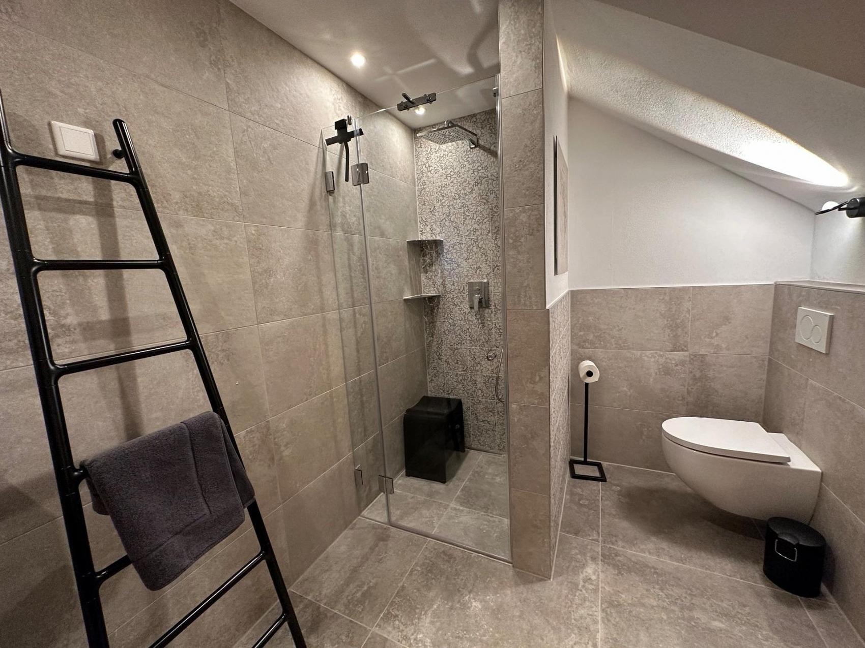 Ferienwohnung 65 qm mit Sauna und Kaminofen, 2022 erbaut, Chalet22, eine Top Ferienunterkunft für 2 Personen. Ökologisch, traditionell, ortsverbunden, gemütlich. Verbindet Vergangenheit und Moderne auf einzigartige Weise. Hochwertige offene Küche, Wohn-Eßzimmer mit Kaminofen, separates Schlafzimmer, 2 Bäder mit Regendusche, WC, Fußbodenheizung im gesamten Haus, Sauna, Balkon, Terrasse, Garten, Autostellplatz, E-TankstelleZentrale Lage, Blick in's Grüne, 10 Minuten zum Starnberger See, München 30 Minuten mit Auto, Skigebiete 30 Minuten mit Auto