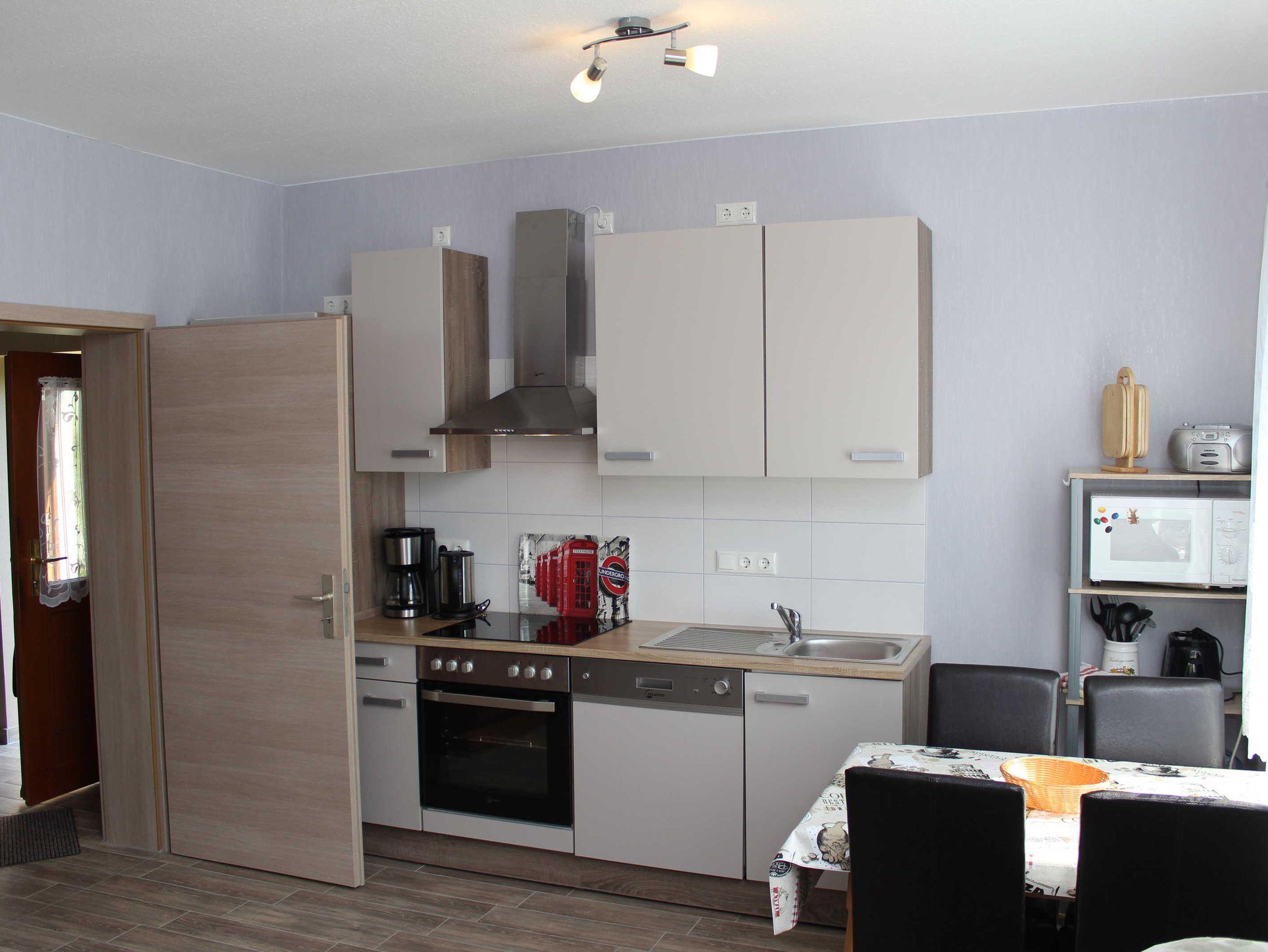 - Wohnküche mit Küchenzeile (Geschirrspüler, Backofen, Mikrowelle)