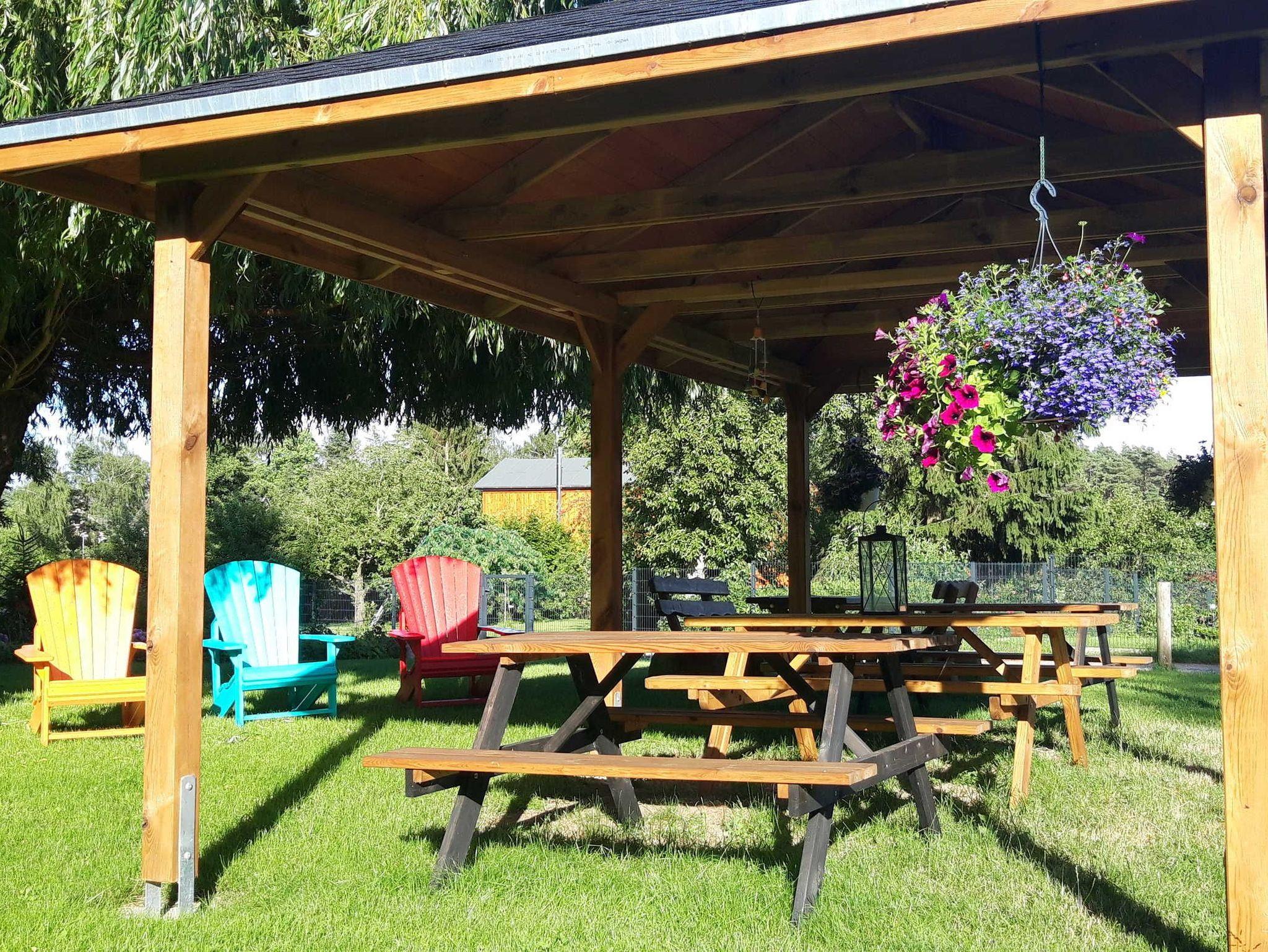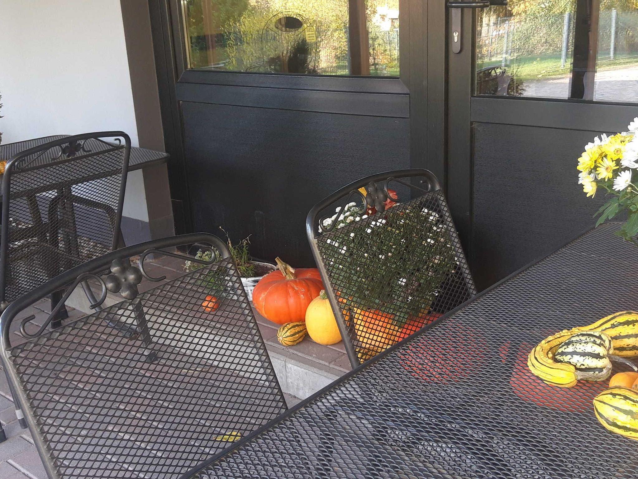 Auf dem Grundstück: Separat für die Gäste 400m² Garten mit Sitzecke, PKW-Stellplatz und Fahrradunterstellplatz. Vogelvolieren und Gemüsegarten. Die Gastgeberin bietet im Kiosk vor Ort von Montag- Freitag einen Imbiss mit Mittagstisch und Getränkeservice.