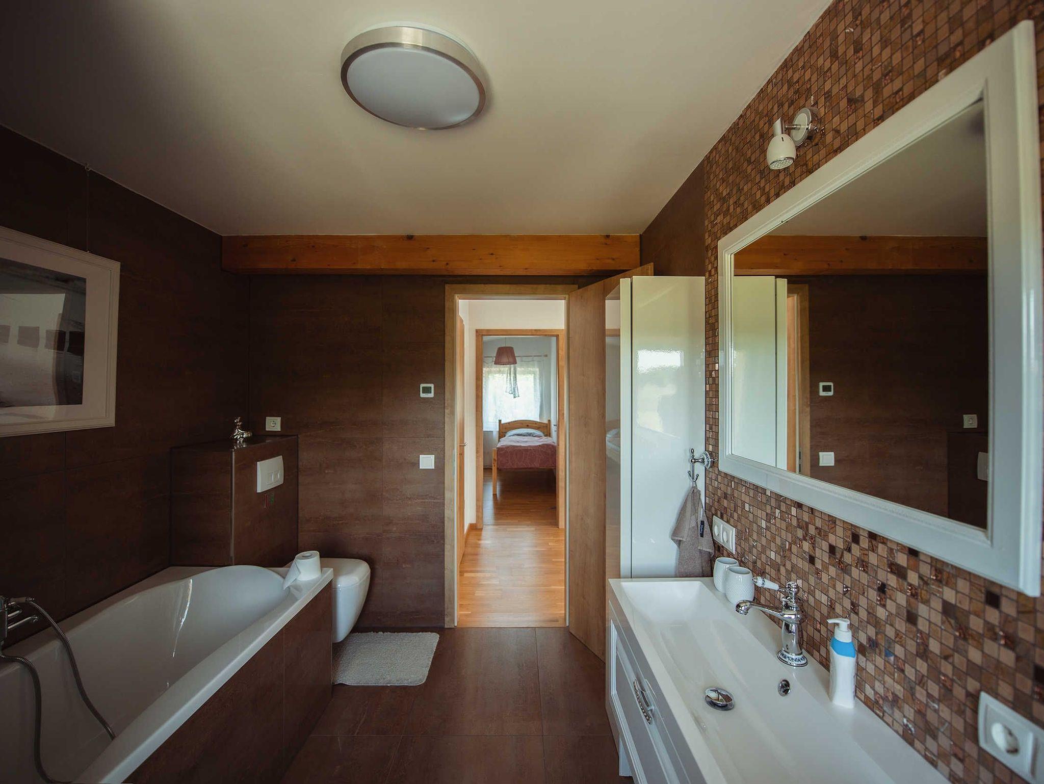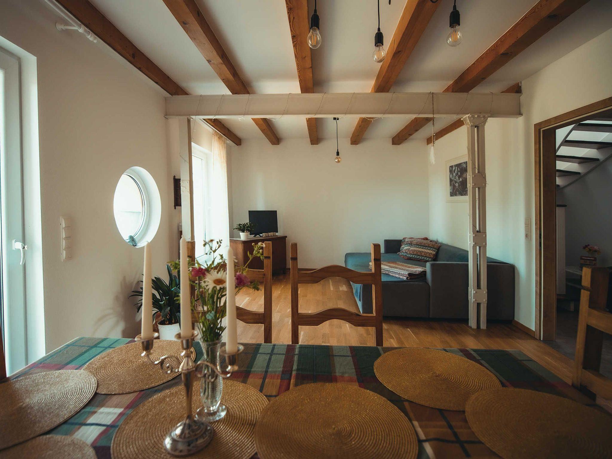 Gemütliche Ferienwohnung mit zwei Bädern im Obergeschoss mit Blick in den Garten und in die Natur.