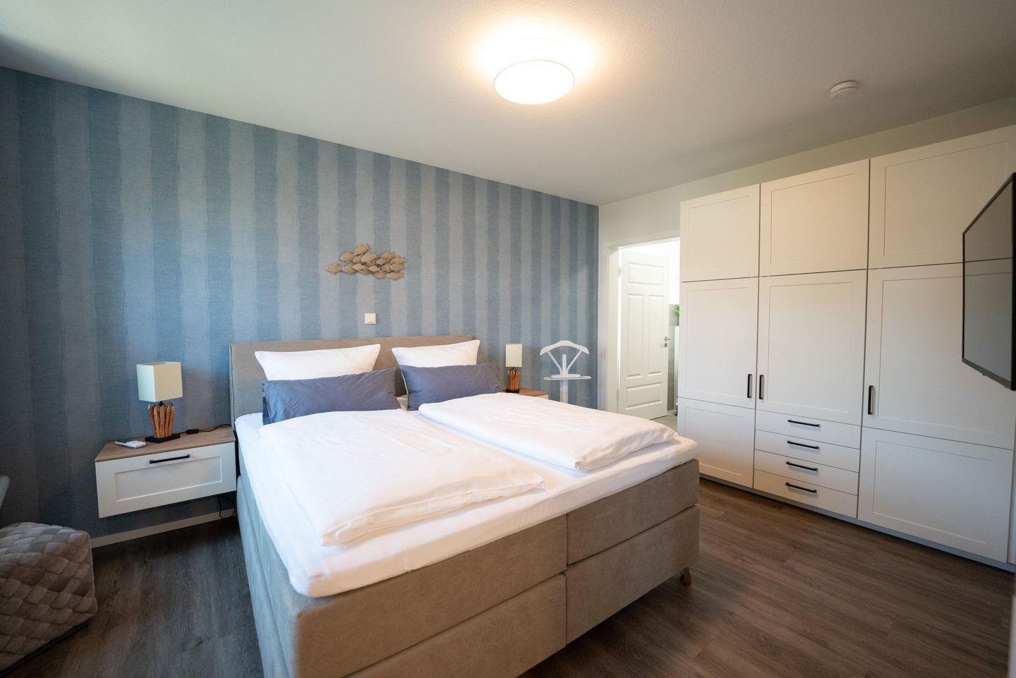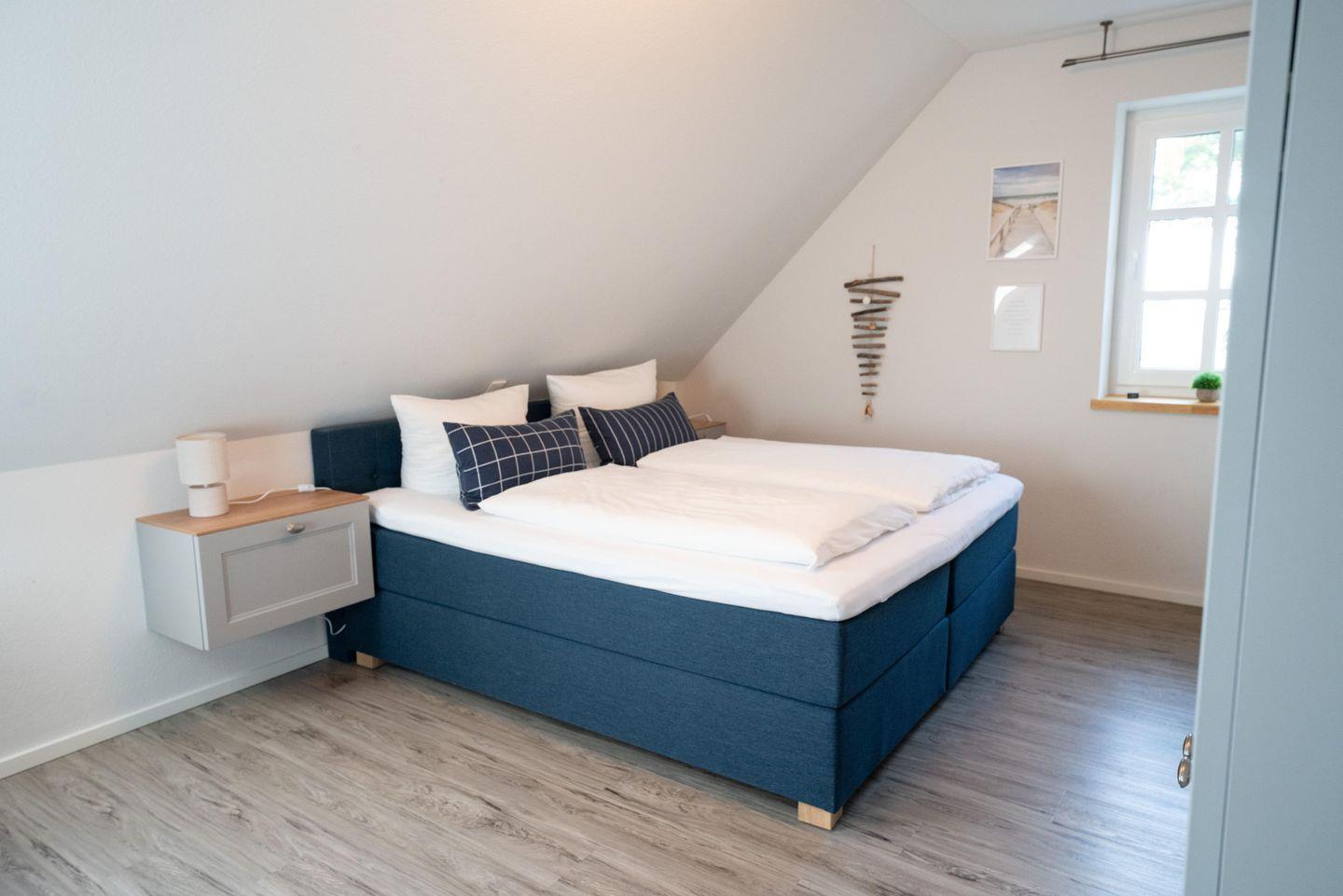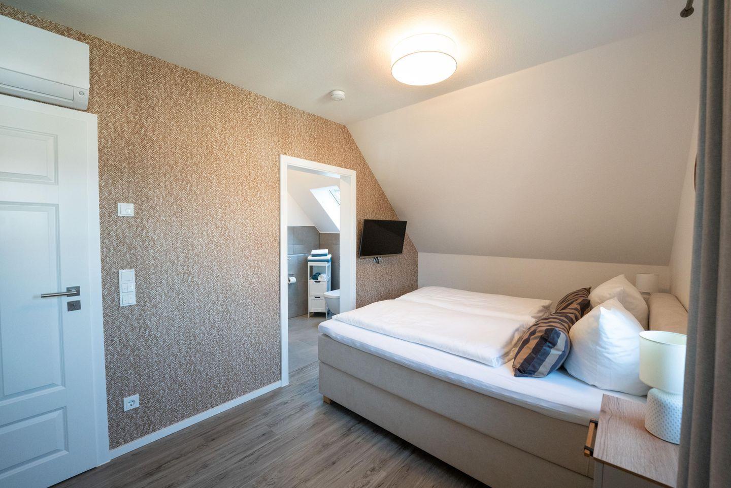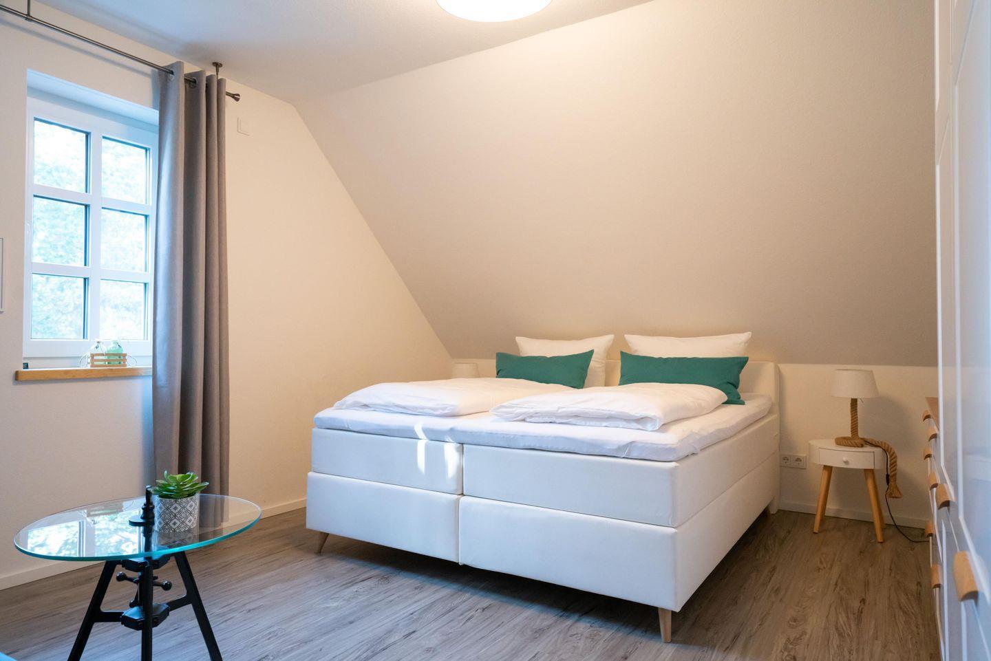 - barrierefreies Schlafzimmer im Erdgeschoss mit einem King-Size-Boxspringbett (180x200) und Badezimmer en Suite