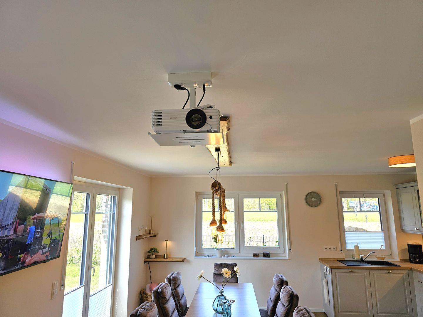 Die beiden modernen und offenen Küchen des Ferienhauses sind jeweis voll ausgestattet und lassen keine Wünsche offen. Sie verfügen jeweils über einen Herd, eine Mikrowelle, einen Kühlschrank mit Gefrierfach, eine Spülmaschine, eine Doppelheißluftfriteuse, sowie zahlreiche Küchenutensilien. Der Essbereich in unmittelbarer Nähe lädt Sie ein, gemeinsam zu kochen, beisammen zu sein und zu klönen. Genießen Sie Ihre Freizeit mit den vorhandenen Spielen und Büchern oder schauen Sie einen Film auf einem der 6 Smart-TV, die über Satellitenanschluss verfügen.