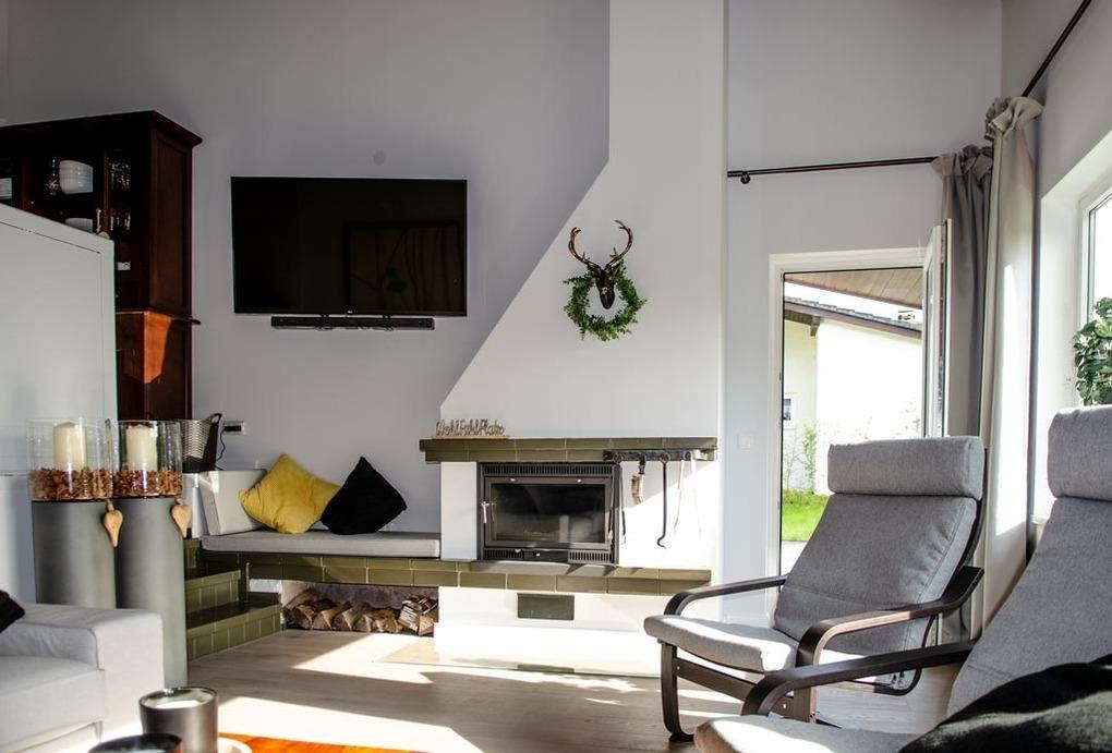 Im Wohnzimmer befindet sich ein lauschiger Kamin, an dem man bei einem Getränk in kuscheliger Atmosphäre den Abend ausklingen lassen kann. Alternativ beschließt man den Tag mit einem spannenden Film auf dem großen Flachbildfernseher.