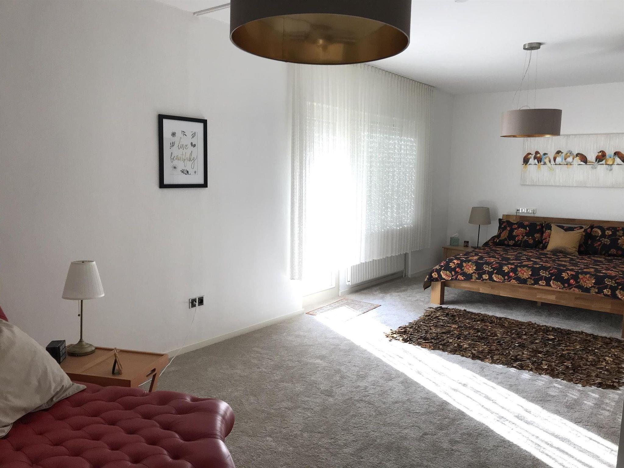 Im Inneren des Hauses erwarten Sie vier komfortable Schlafzimmer, jedes mit individuellem Charme und reichlich Platz zum Erholen. Das erste Schlafzimmer, das „Germaniablick“-Zimmer, ist mit einem großzügigen Doppelbett (200 x 200 cm) ausgestattet und bietet einen herrlichen Ausblick auf die Umgebung. Das „Erlkönigzimmer“ verfügt über ein französisches Bett (140 x 200 cm) und ist ideal für Paare oder Einzelpersonen. Das „Gretchenzimmer“ bietet zwei Einzelbetten (90 x 200 cm) und eignet sich perfekt für Freunde oder Kinder. Das größte Schlafzimmer, eine Suite mit ca. 30 m², besticht durch ein Doppelbett (200 x 200 cm), ein Sofa und einen Balkon, der zum Entspannen einlädt. Hier besteht auch die Möglichkeit, ein Babybett aufzustellen, und ein Kinderbett ist ebenfalls vorhanden. Bettwäsche ist im Preis inbegriffen.