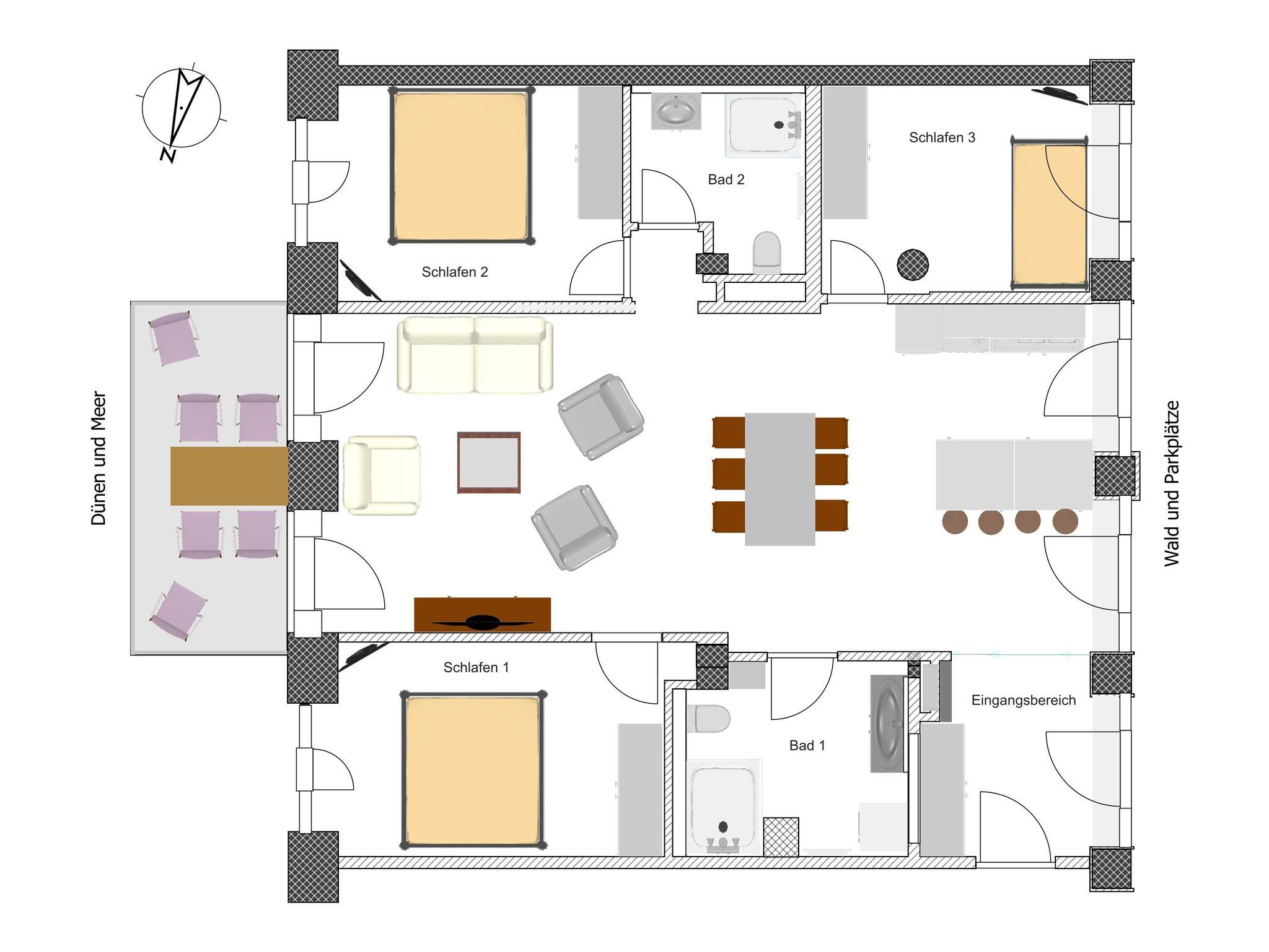 Hier könnt ihr die Schönheit der Ostsee in vollen Zügen genießen. Mit drei Schlafzimmern und zwei modernen Bädern habt ihr genügend Platz für Privatsphäre und gemeinsame Zeit. Besonders das Elternschlafzimmer mit eigenem Bad und direktem Meerblick lädt zu ruhigen Momenten zu zweit ein. Die beiden anderen Schlafzimmer – eines mit Meerblick, das andere landseitig und besonders ruhig gelegen – bieten bequeme Betten und hochwertige Matratzen für einen erholsamen Schlaf. Ein Kinderbett und ein Hochstuhl stehen bei Bedarf kostenfrei zur Verfügung, damit sich auch unsere jüngsten Gäste rundum wohlfühlen.