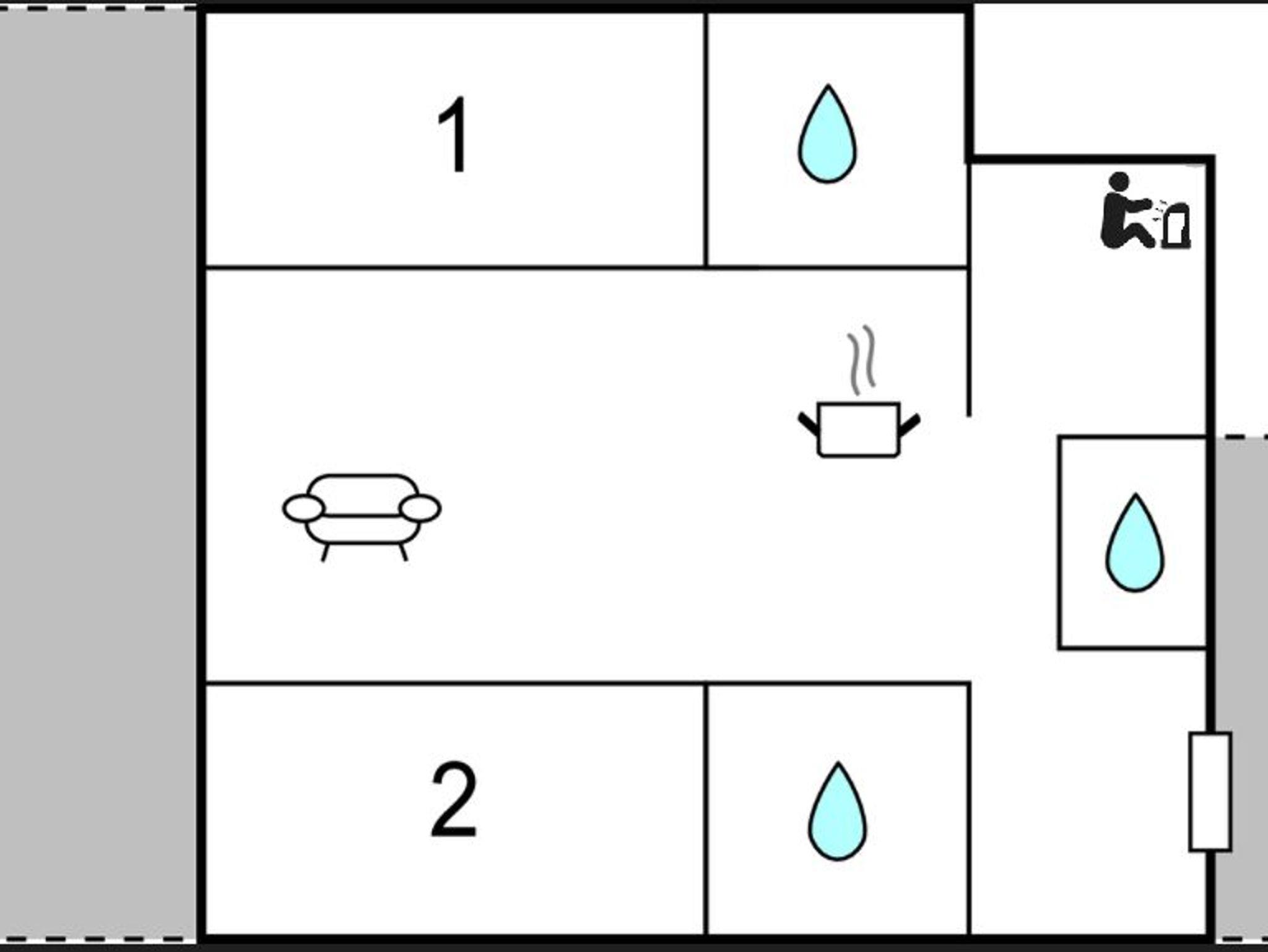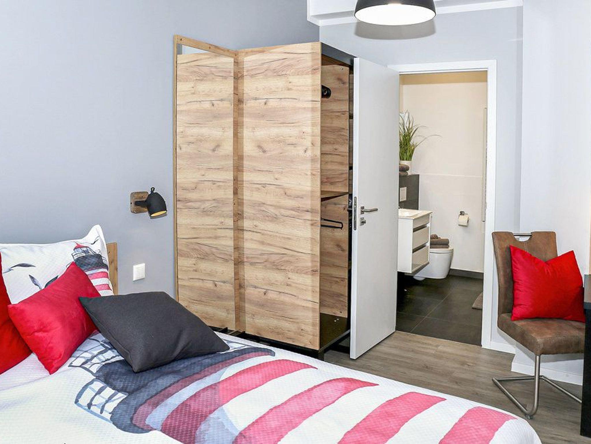 - Schlafzimmer 2: Zwei Einzelbetten, TV, Kleiderschrank