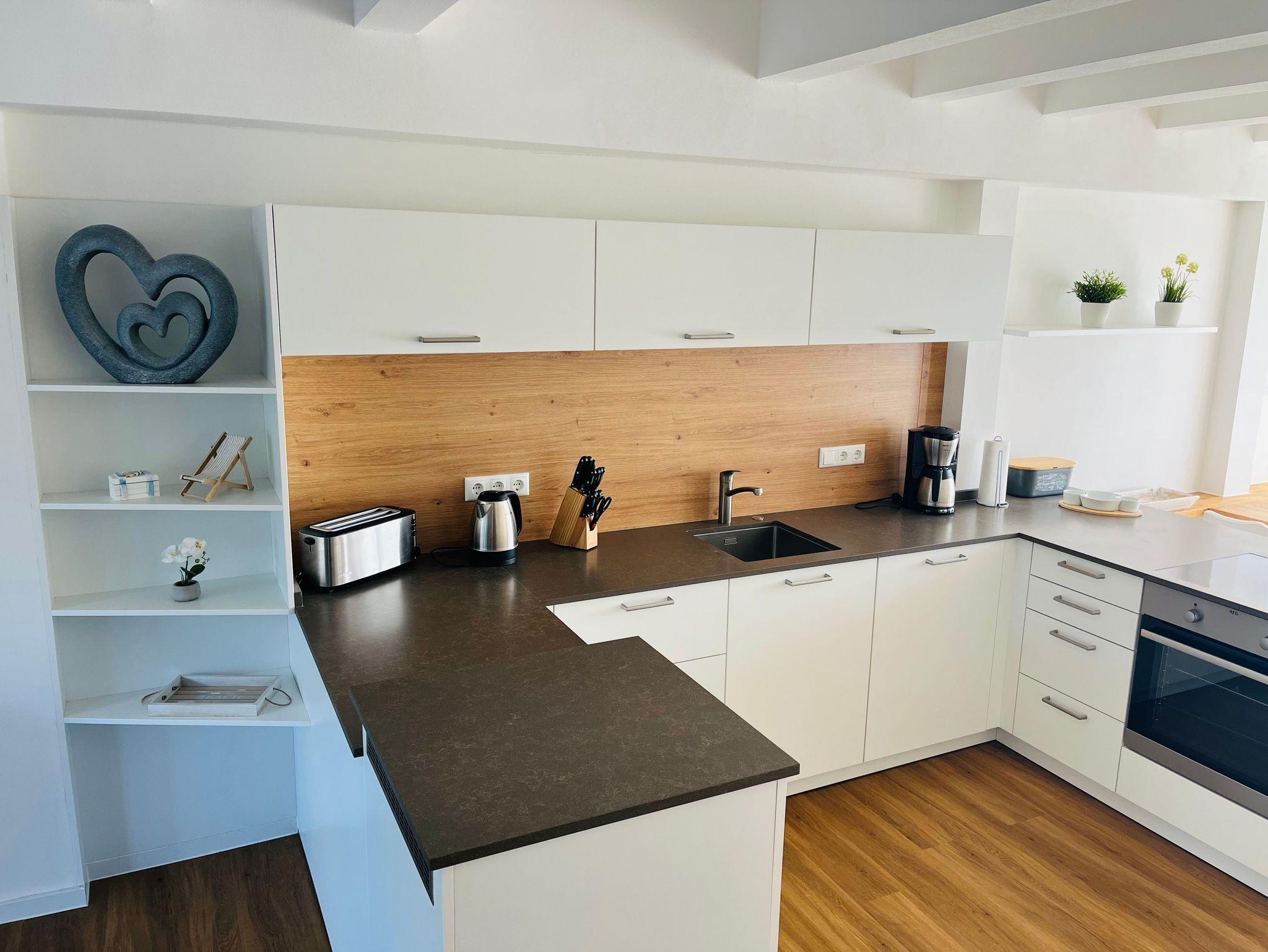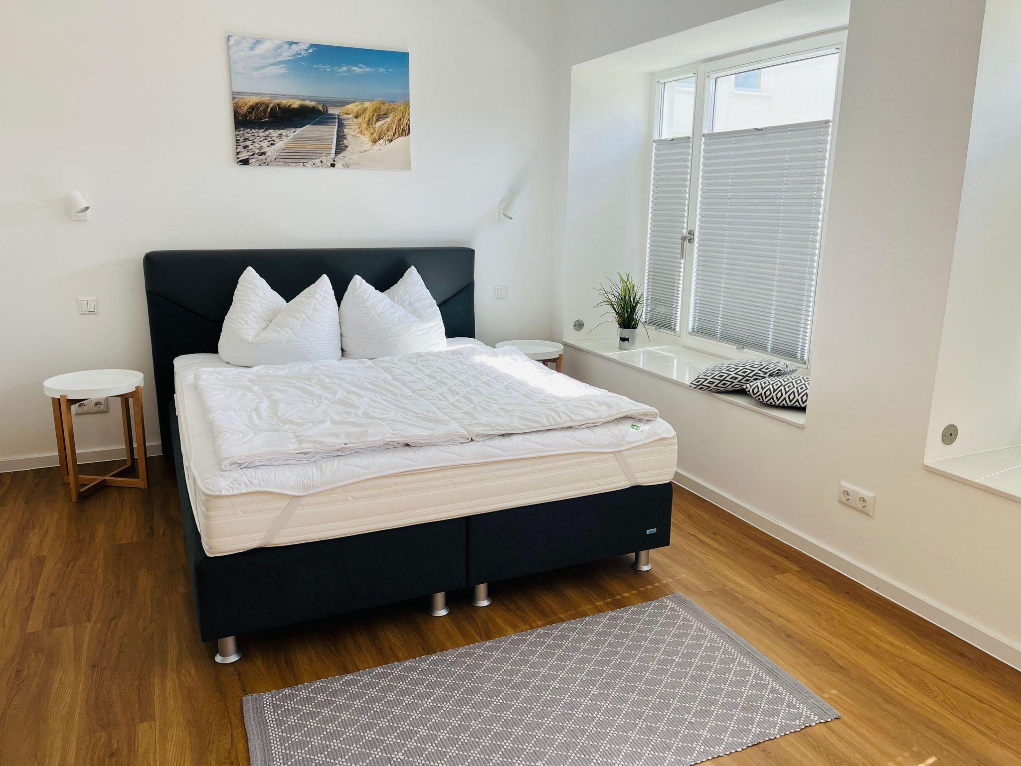 Sie befindet sich ca. 150 m vom Strand gelegen und besteht aus 1 großem Wohn- und Essbereich mit integrierter Küche, 2 separaten Schlafzimmern, 1 großen und 1 kleinen Duschbad.