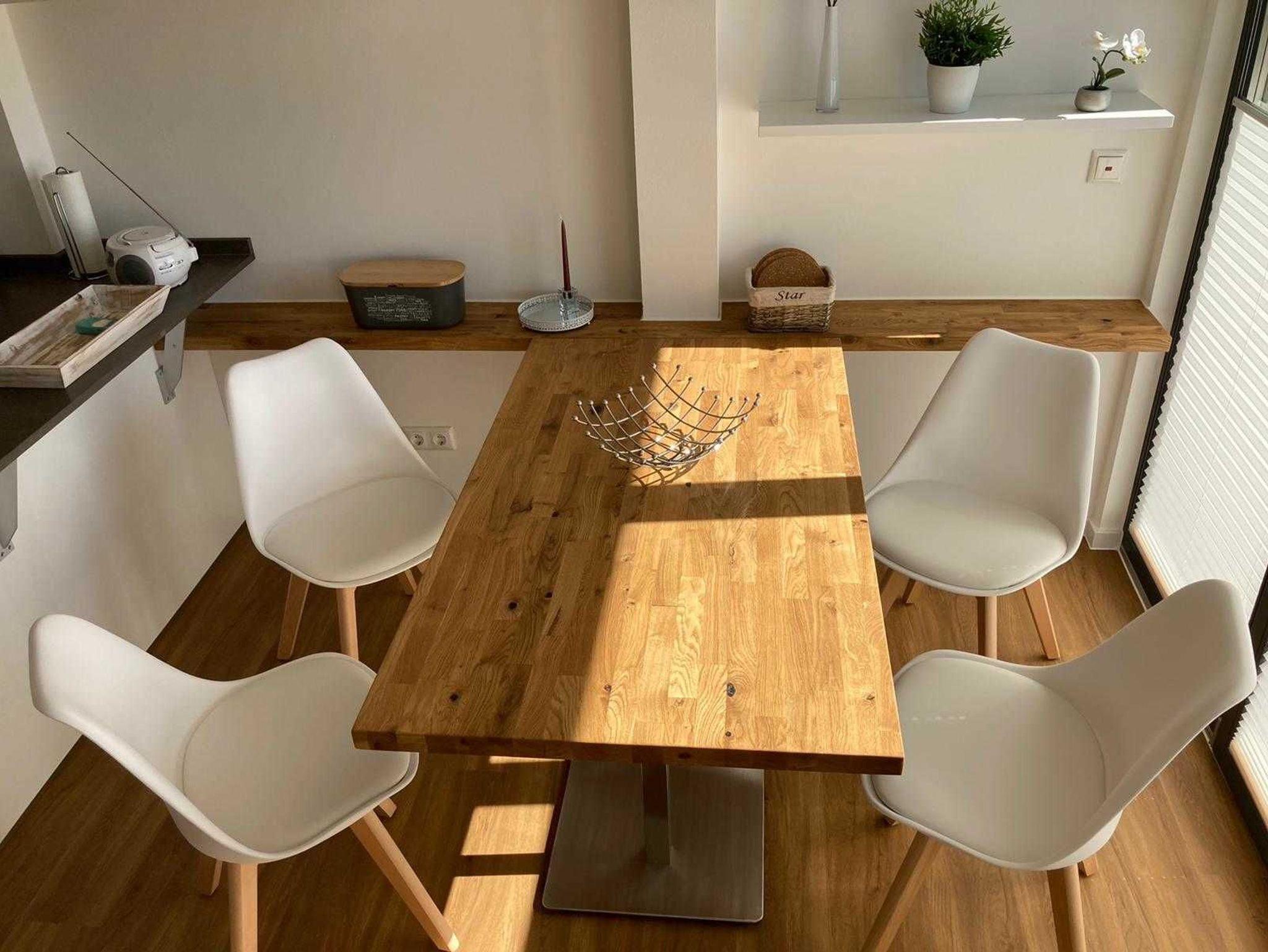 Unsere Ferienwohnung besteht aus einem Wohn- und Essbereich mit integrierter Küche. Der Essbereich ist mit einem großen Tisch und 4 Stühlen ausgestattet. Die Schlafzimmer sind beide jeweils mit einem Doppelbett ausgestattet und bieten einen optimalen Schlaf. Insgesamt sind 2 Badezimmer vorhanden. Auch am Abend besteht die Möglichkeit sich auf der Terrasse aufzuhalten und zu entspannen.