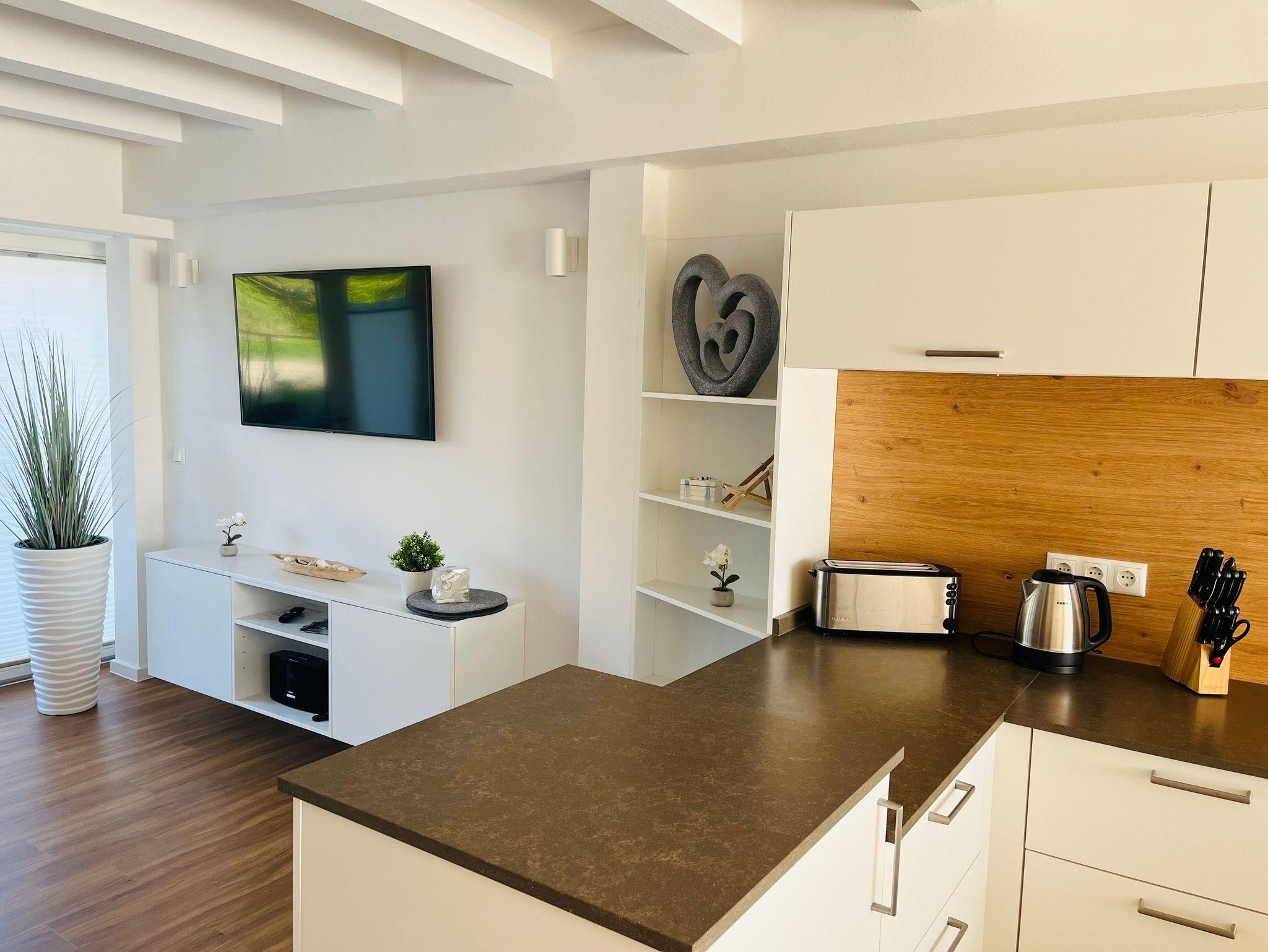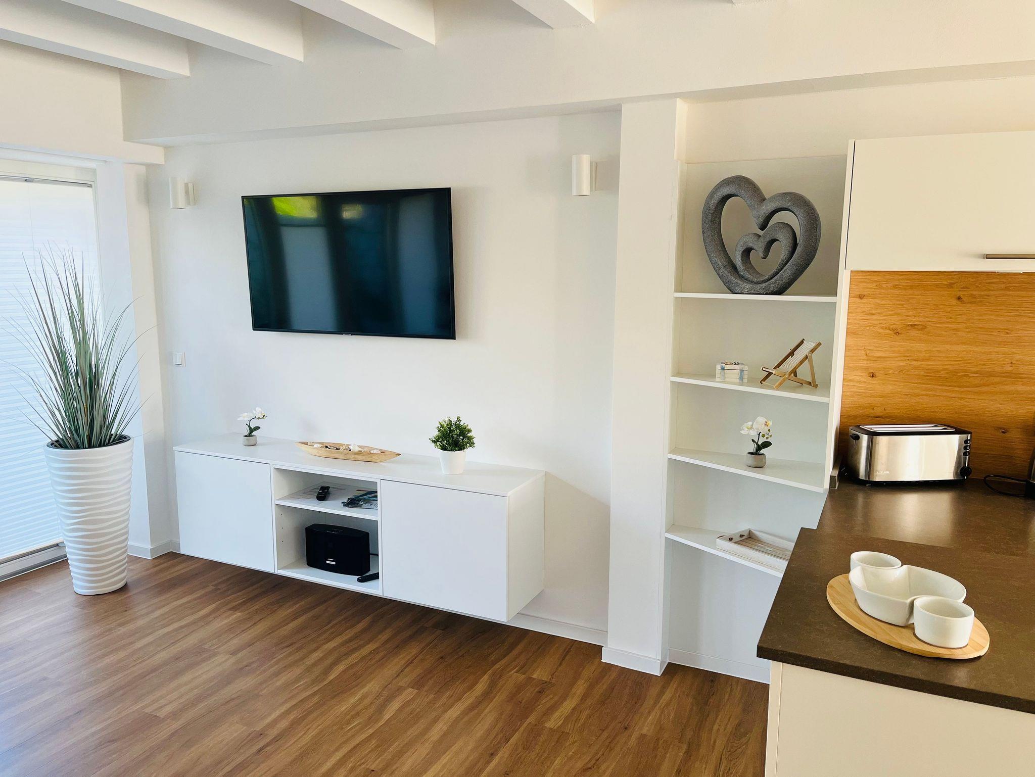 In unserer Ferienwohnung befinden sich 3 Flatscreen-Fernsehgeräte, kostenloses WLAN sowie ein PKW-Stellplatz.