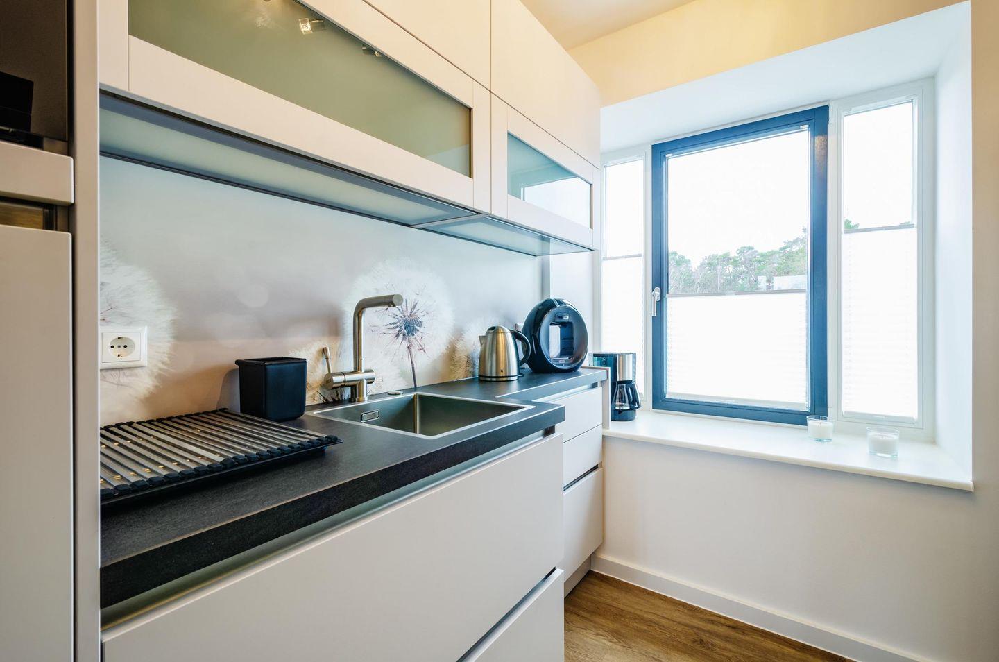 Hinter dieser Ferienwohnung im 3.Obergeschoss des Hauses Granitz, verbirgt sich eine luxuriöse im italienischen Flair ausgestattete Nichtraucherwohnung. Dort heißt man Sie rechtherzlich willkommen und lädt Sie ein, den Stress des Alltages zu vergessen, hier werden Träume war - mit Blick zum Meer. Durch bodentiefe Fenster können Sie das Schauspiel der Wellen beobachten und das wiegen der Bäume im Wind, es wird Ihnen ein Lächeln auf die Lippen zaubern. Dieses komfortable Ferienzuhause teilt sich auf in: zwei Schlafzimmer die Platz für vier Personen oder - eine Familie mit zwei Kindern bieten, mit je einem Flachbild-TV, zwei separate moderne Duschbäder mit WC lassen Raum für Privatsphäre, ein Wohn -und Essbereich lässt die Familie zusammenkommen, gleich nebenan, in Sichtweite, können Sie köstliche Speisen in einer modernen Küche zubereiten. Kostenfreier WLAN-Zugang ist selbstverständlich. Hunde müssen leider draußen bleiben.