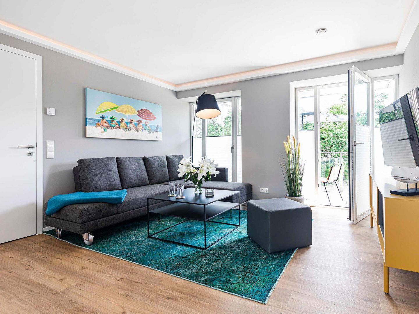 Ein Hauch von Luxus umgibt Sie, wenn Sie diese geräumige Ferienwohnung mit sagenhaftem Meerblick betreten. Die hochwertige Ausstattung wird sofort das Gefühl in Ihnen wecken, zuhause angekommen zu sein. Die 2 Schlafzimmer, das Wohnzimmer mit zentral gelegenem Küchenbereich und die 2 Bäder mit Dusche und WC werden Sie sofort begeistern. Eine weite Fensterfront mit Balkon öffnet sich, so dass die drei hellen Räume von Licht durchflutet werden. Sie werden sich bei uns in Prora sofort heimisch fühlen von einer zauberhaften Natur mit herrlichen Stränden, Bäumen und Dünen umgeben.
