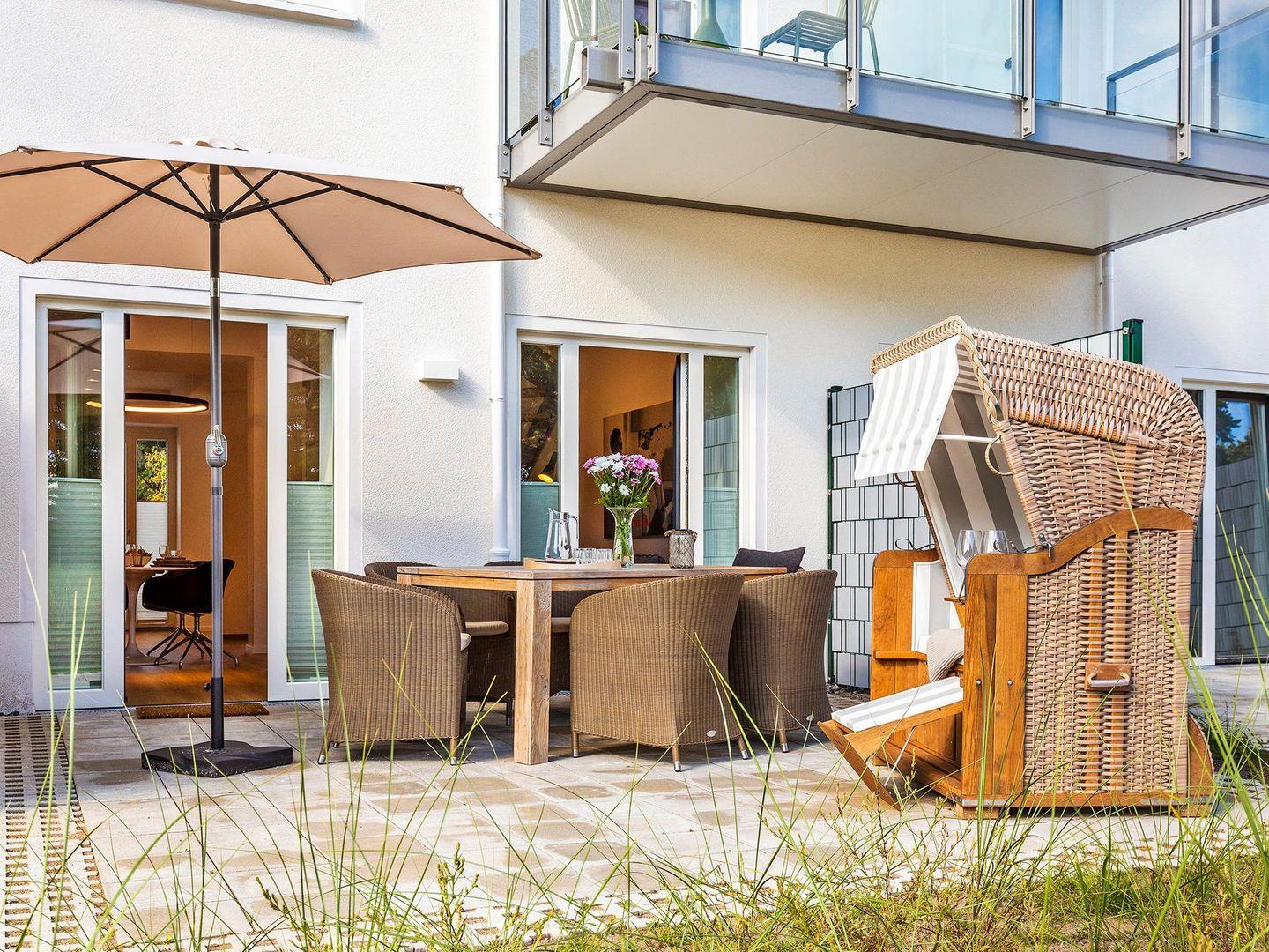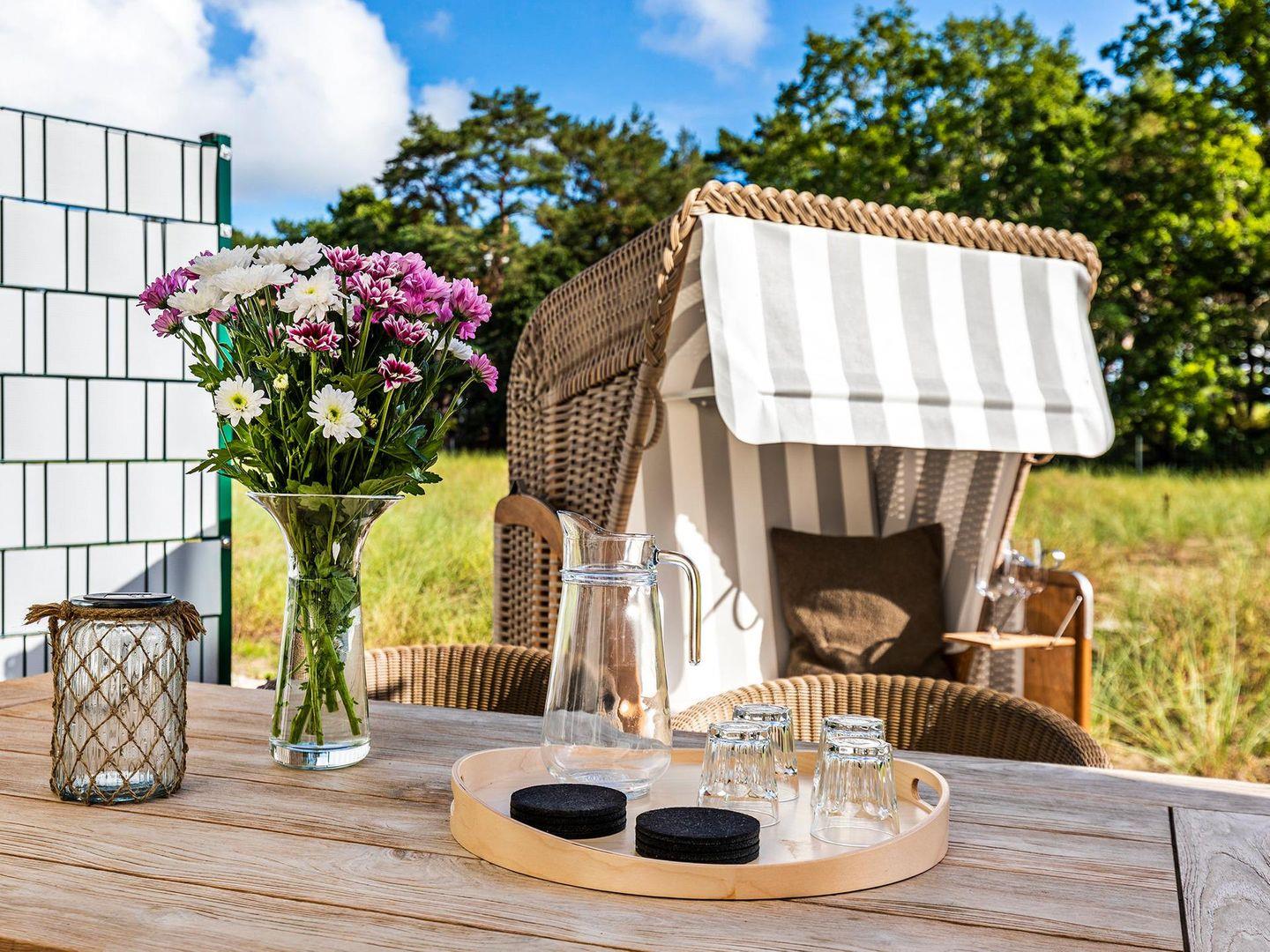 - Terrasse: Sitzmöglichkeit mit Blick auf die Dünenlandschaft, Eigener Strandkorb