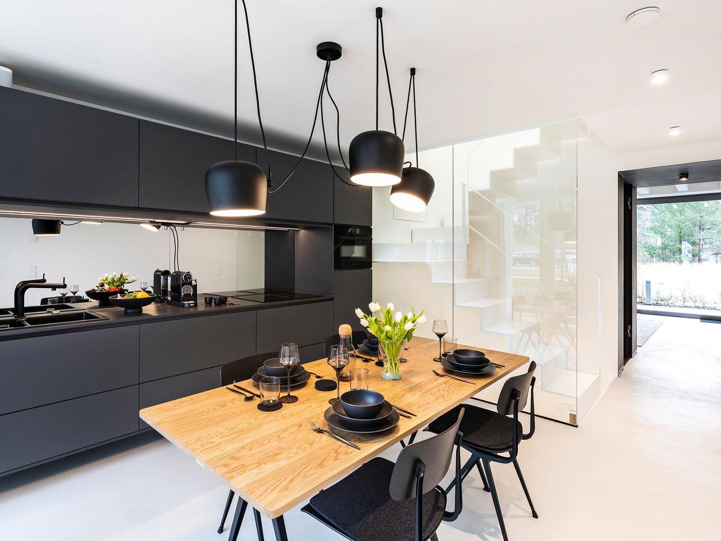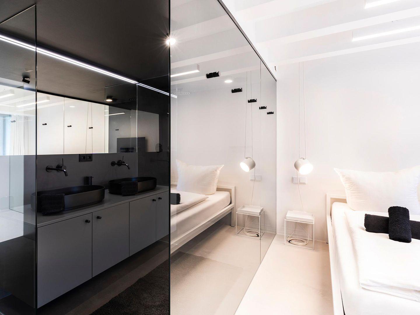 Willkommen im VOID Konzeptapartment. Erlebt minimalistisches Design auf drei Etagen. Ihr betretet das Apartment über eine kleine Terrasse direkt von der Promenade. Der Eingang führt in den modernen Küchen und Essbereich. Der Raum besticht durch seine helle Atmosphäre und die wandhängende Küche. Das dunkle Gäste-WC steht im Kontrast zum hellen Wohnbereich. Das puristische Design des Wohnzimmers und die großen Schiebefester inszenieren den Ausblick in die Dünenlandschaft. Von der Wohnzimmerterrasse gelangt Ihr mit wenigen Schritten zum weißen Strand der Binzer Bucht. Die filigrane Faltwerktreppe verbindet die drei Etagen des VOID?s. Im Obergeschoss befinden sich zwei Suiten. Das White-on-White Design der Schlafräume steht im Kontrast zu den dunklen Ankleiden und Bädern. Einbauschränke bieten genug Stauraum für Eure Kleidung. In der Baltic-Suite genießt Ihr den Ausblick vom privaten Balkon auf die Ostsee. Im Untergeschoss des VOID?s befindet sich der Spa Bereich. Die einzigartige Atmosphäre der dunklen und rauen Wände und Decken lädt zum entspannen ein. Euch stehen eine großzügige Sauna, eine Dusche und ein Ruhebereich zur Verfügung. Minimalismus bedeutet auf unnötiges Beiwerk zu verzichten um Raum für die wichtigen Dinge zu schaffen. Das VOID bietet Euch ein Gleichgewicht aus Voll und Leer ohne Kompromisse bei Komfort und Raumwirkung.