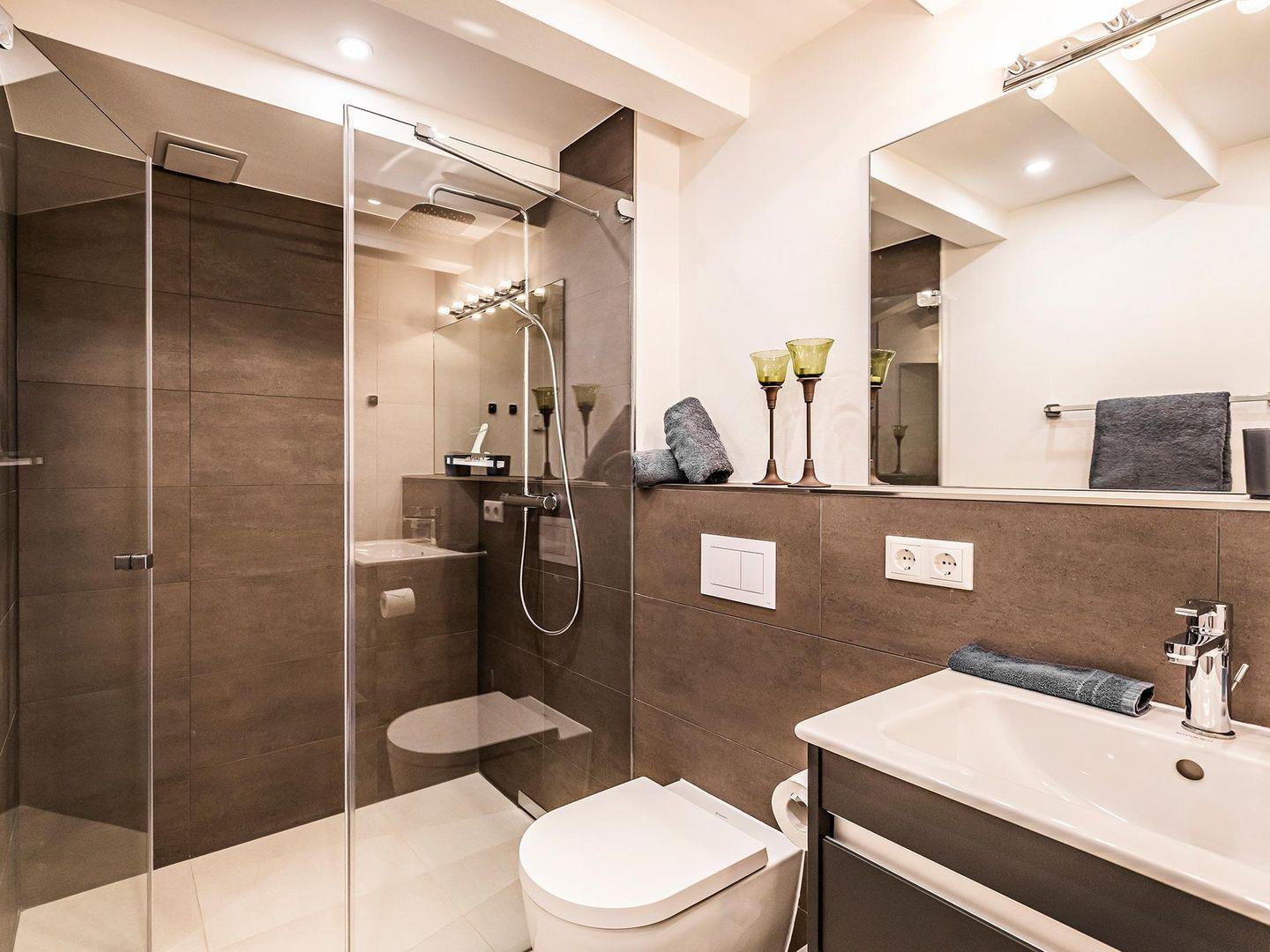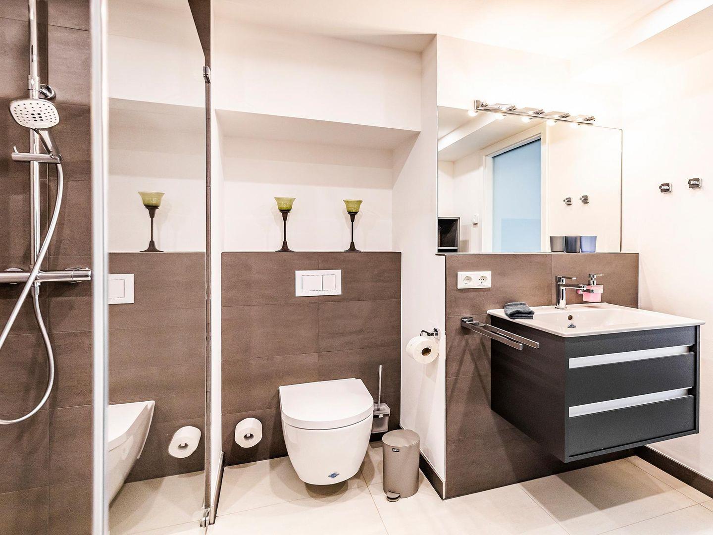 - Badezimmer 1: Dusche, Waschbecken, WC