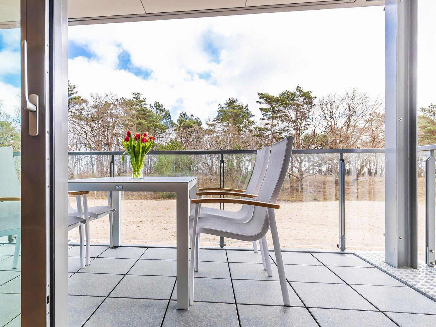 - Balkon mit Tisch und 4 Stühlen, Blick auf das Meer