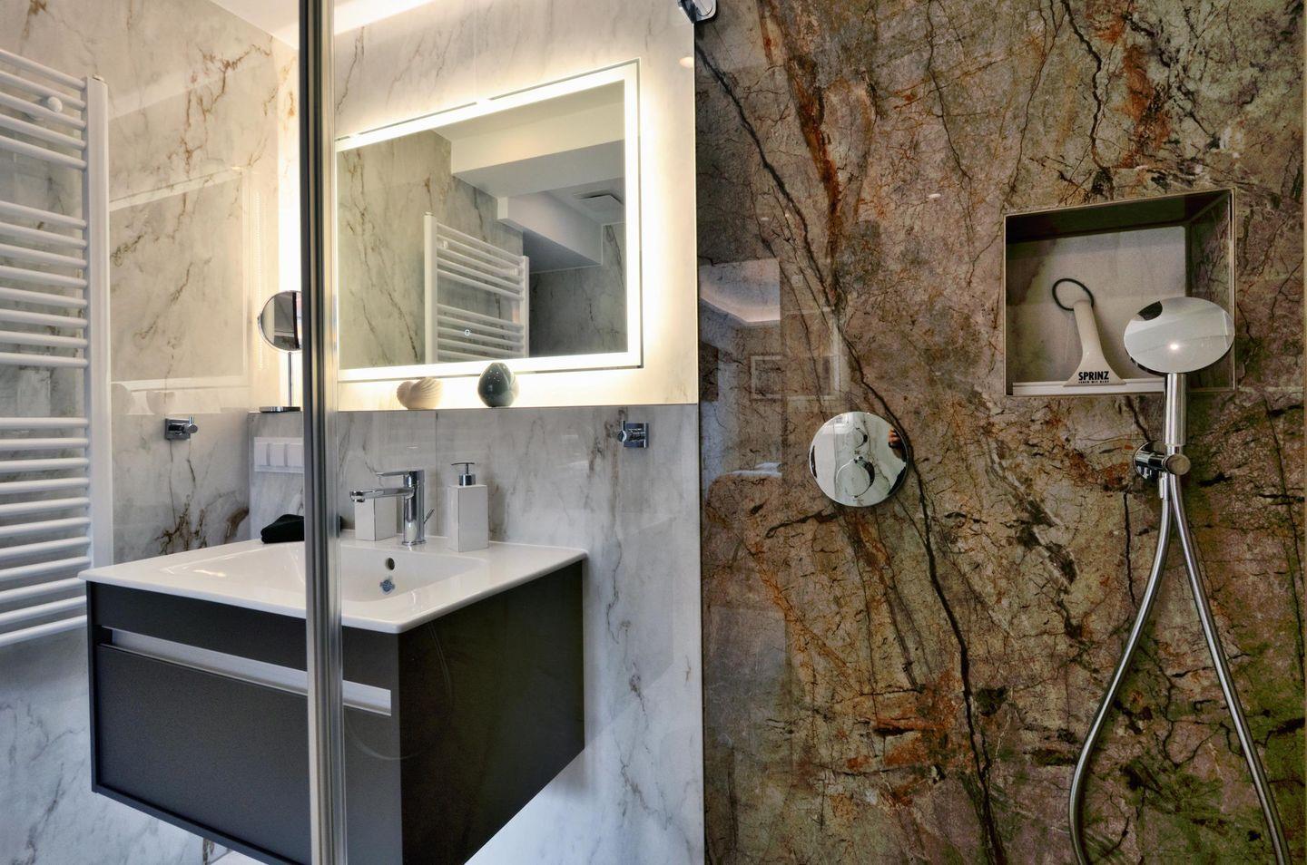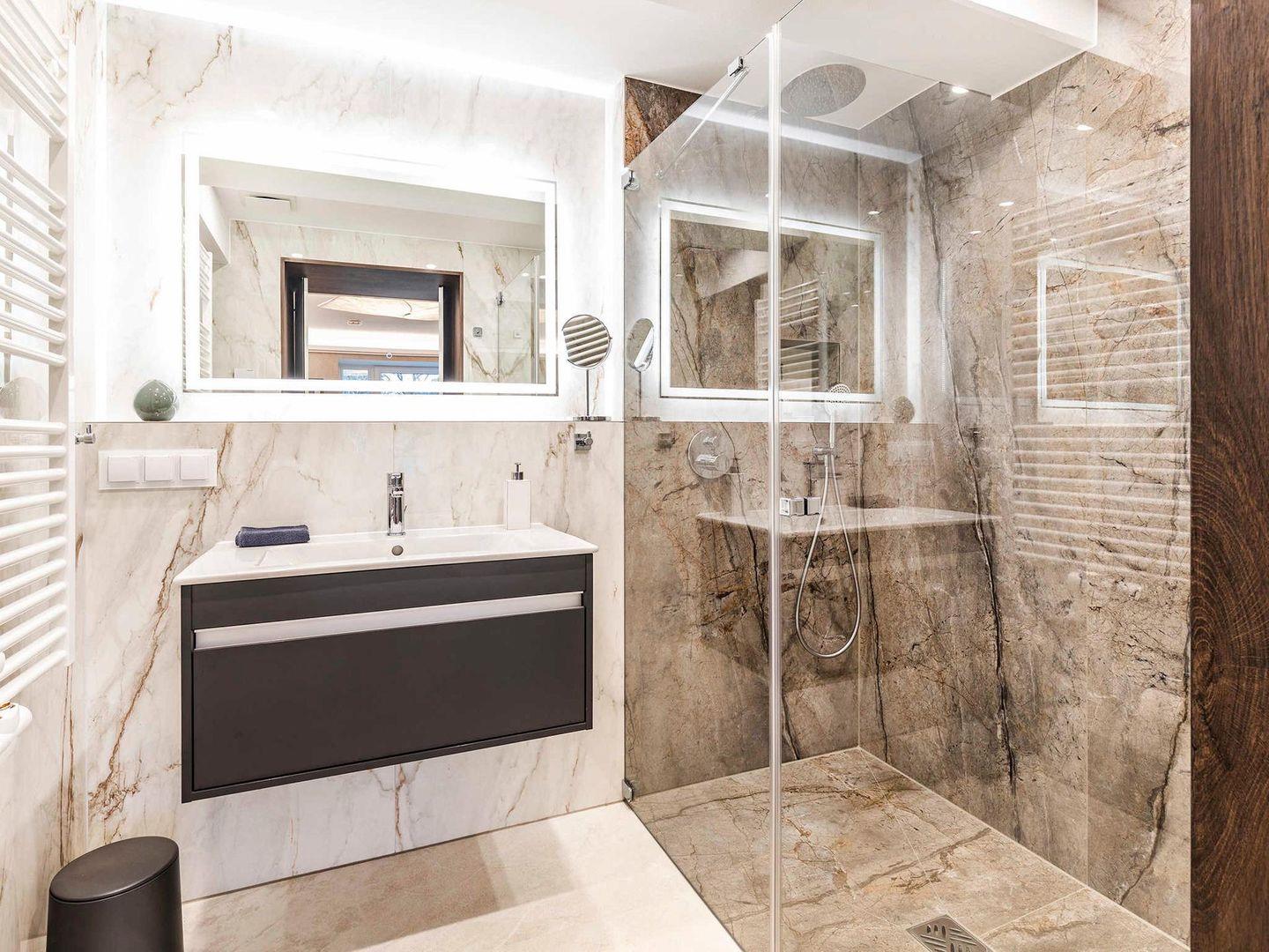 Die voll ausgestattete Küche ist besonders hochwertig und verfügt unter anderem über einen Weinkühlschrank. Hier können Sie gemeinsam kochen und die Mahlzeiten genießen. In der Wohnung stehen drei Fernseher zur Verfügung. Alle drei Geräte sind Netflix-tauglich. Somit können Sie Ihre eigenen Netflix-Inhalte auch im Urlaub genießen.